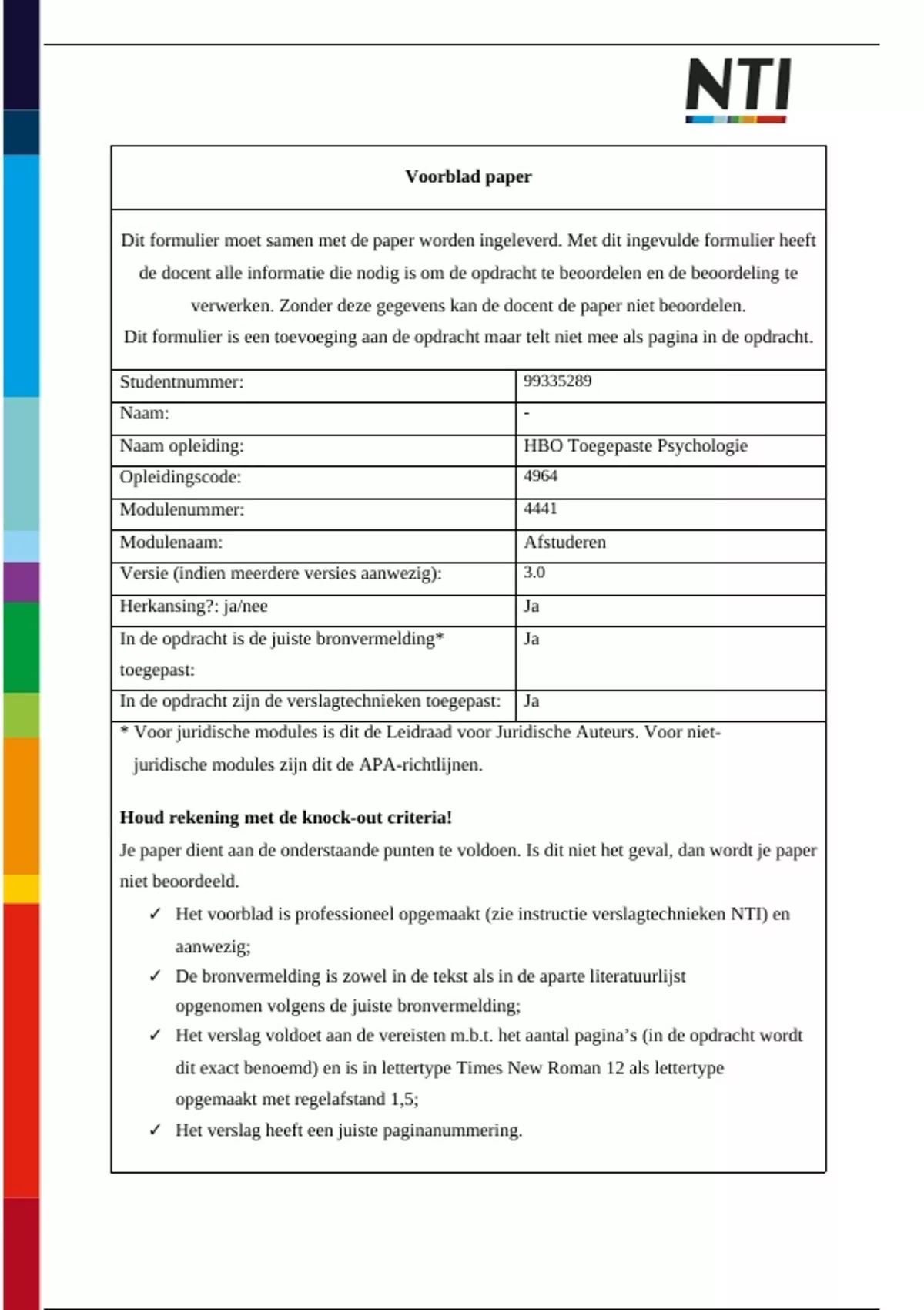 ✓ Het voorblad is professioneel opgemaakt (zie instructie verslagtechnieken NTI) en