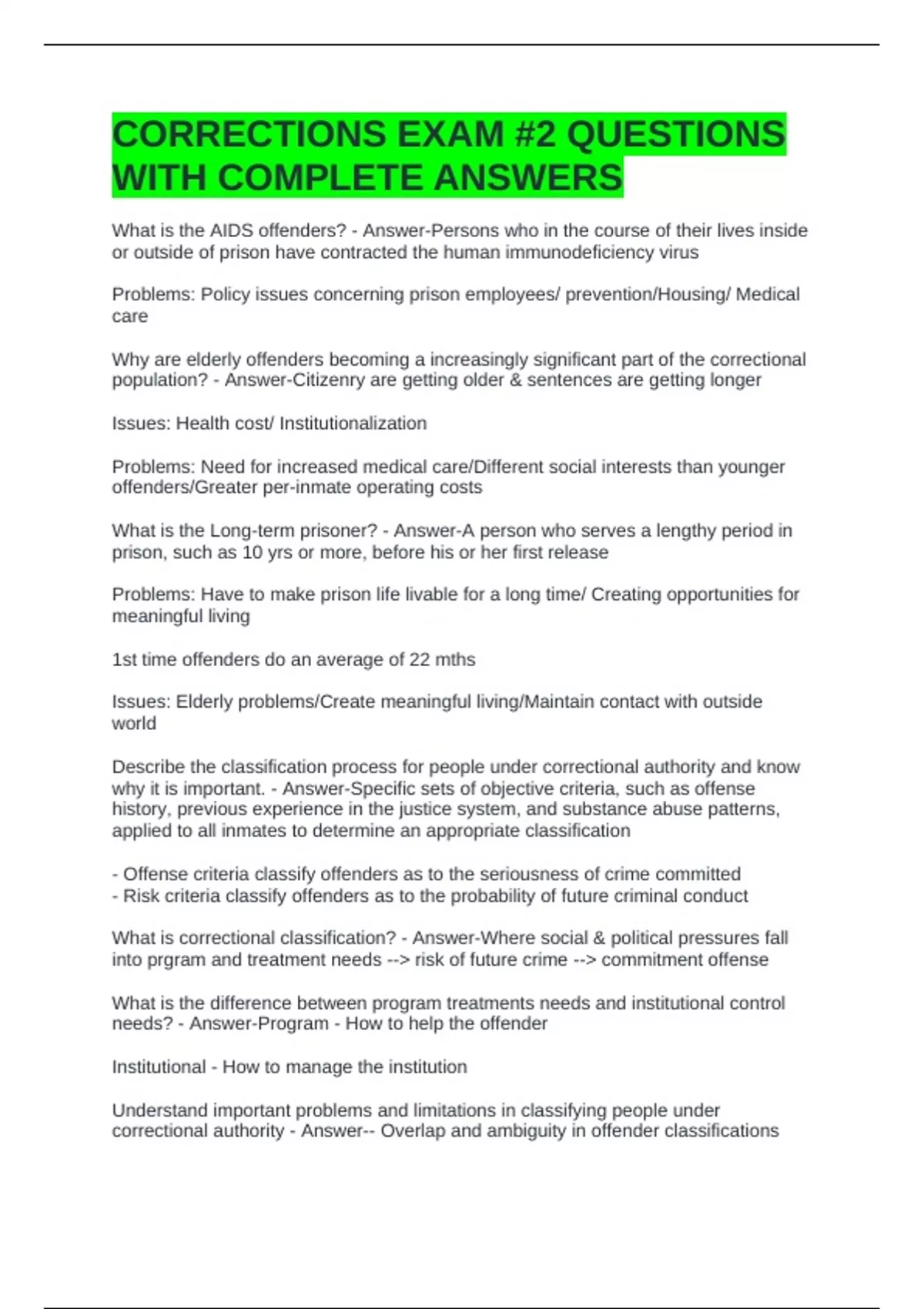 CORRECTIONS EXAM #2 QUESTIONS WITH COMPLETE ANSWERS