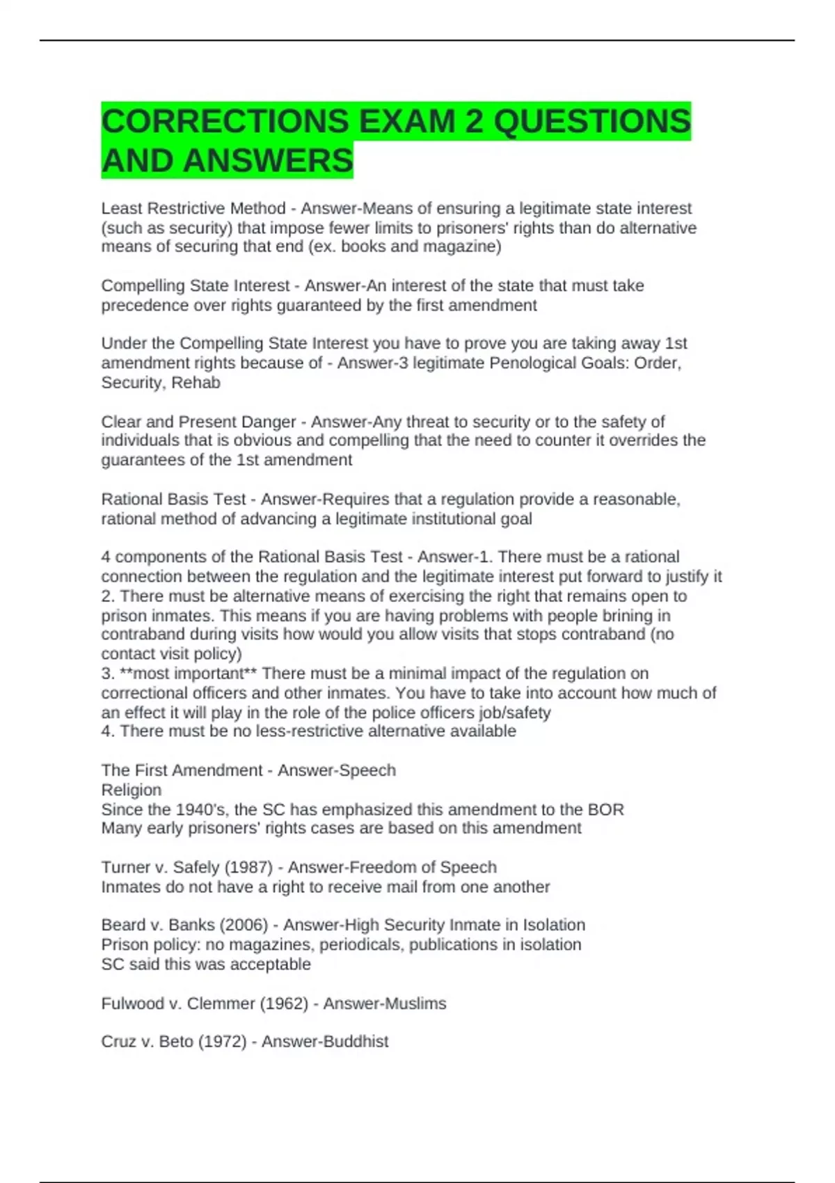 CORRECTIONS EXAM 2 QUESTIONS AND ANSWERS