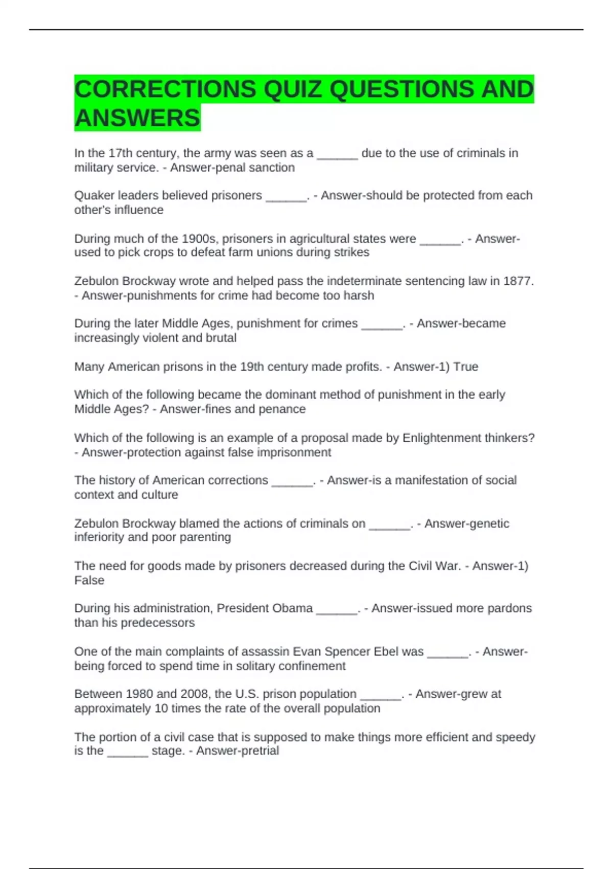 CORRECTIONS QUIZ QUESTIONS AND