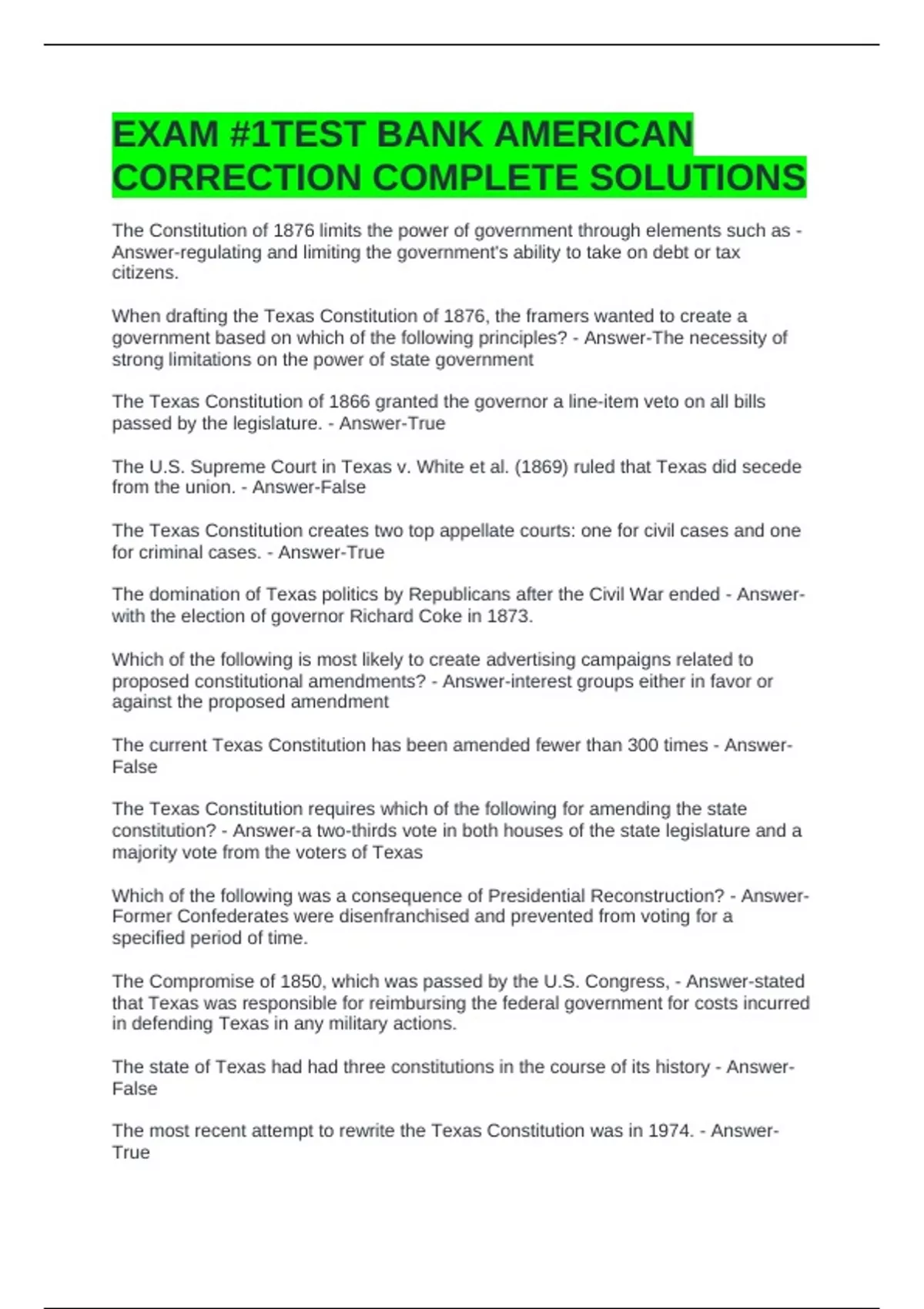 The current Texas Constitution has been amended fewer than 300 times - Answer-