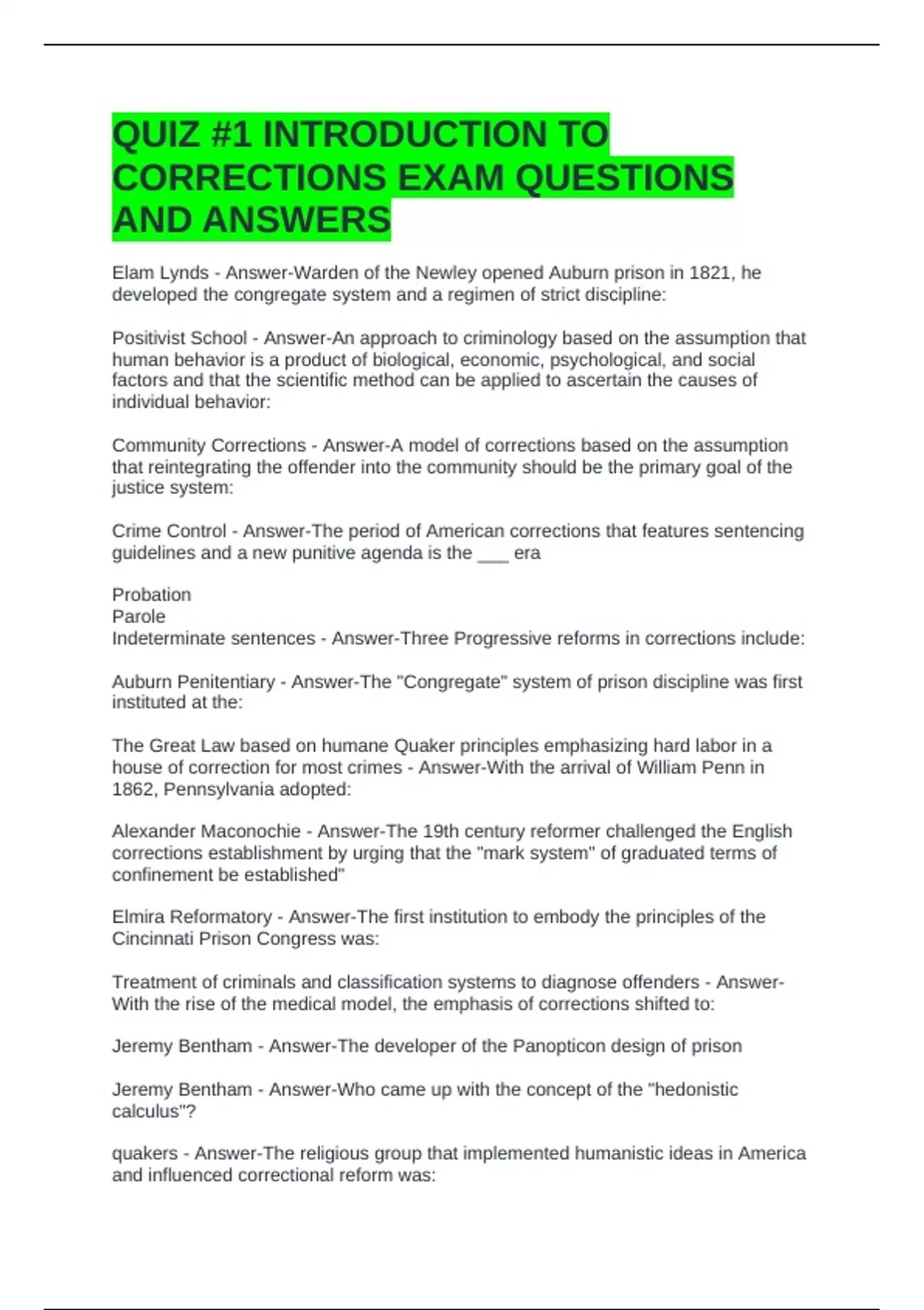 CORRECTIONS EXAM QUESTIONS