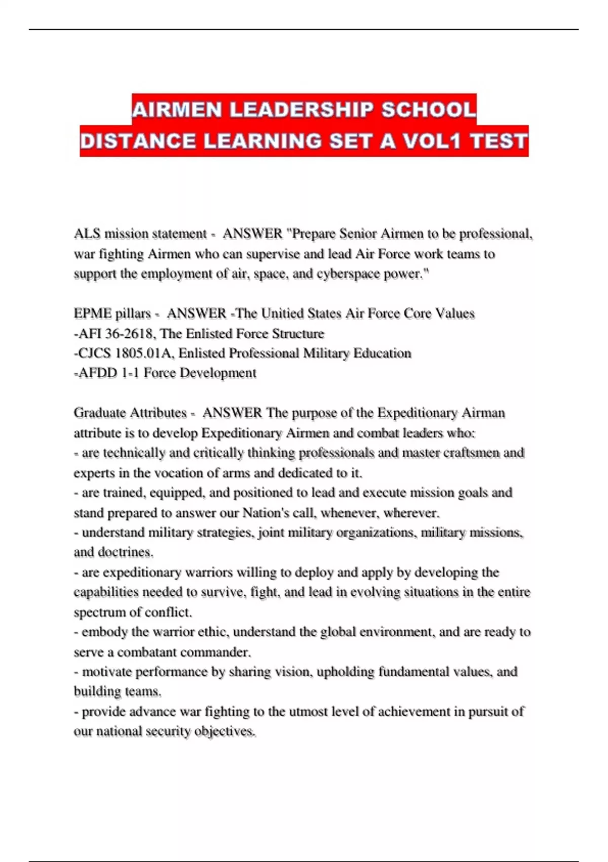 ALS mission statement - ANSWER "Prepare Senior Airmen to be professional,