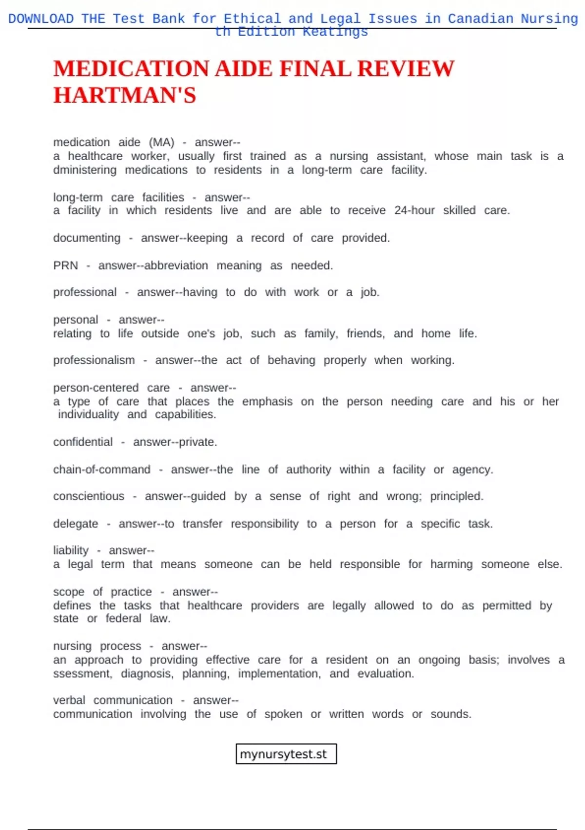 , DOWNLOADnmTHEnmTestnmBanknmfornmEthicalnmandnmLegalnmIssuesnminnmCanadiannmNursingnm