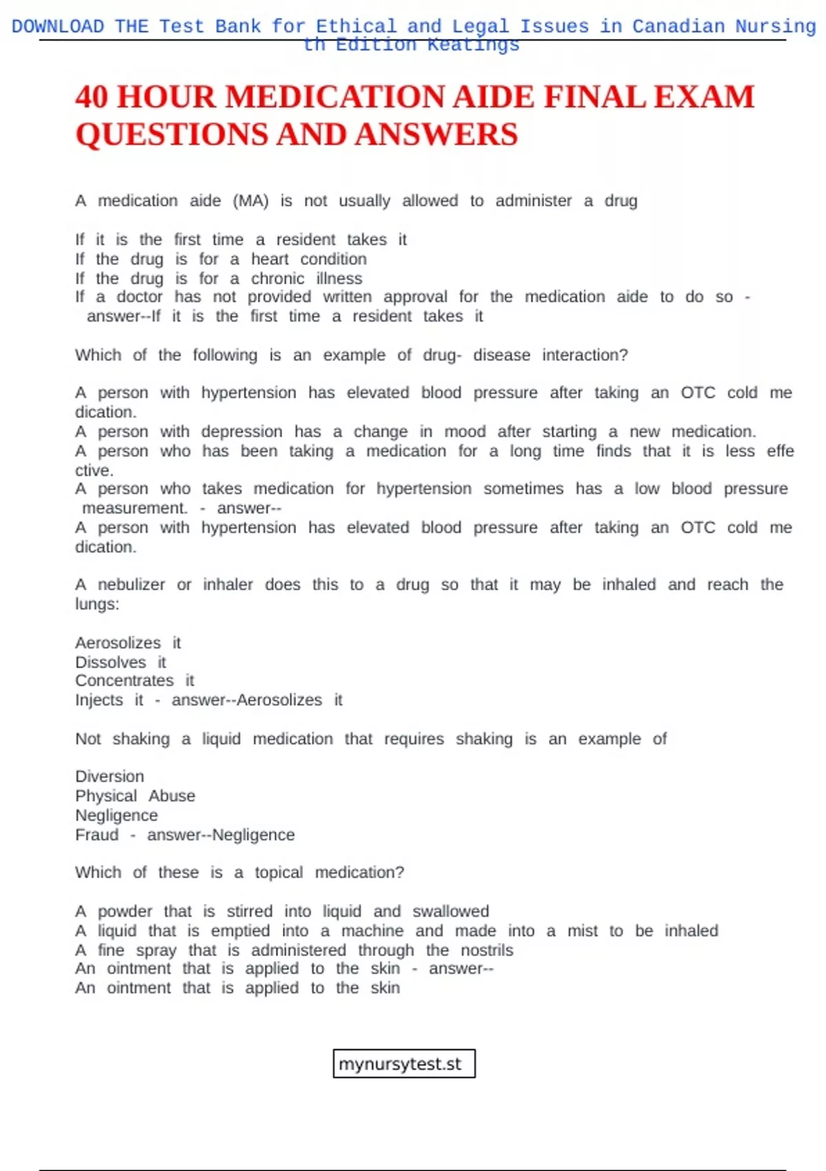 , DOWNLOADnmTHEnmTestnmBanknmfornmEthicalnmandnmLegalnmIssuesnminnmCanadiannmNursingnm