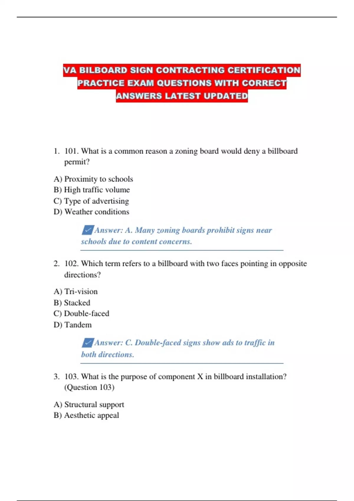 2. 102. Which term refers to a billboard with two faces pointing in opposite