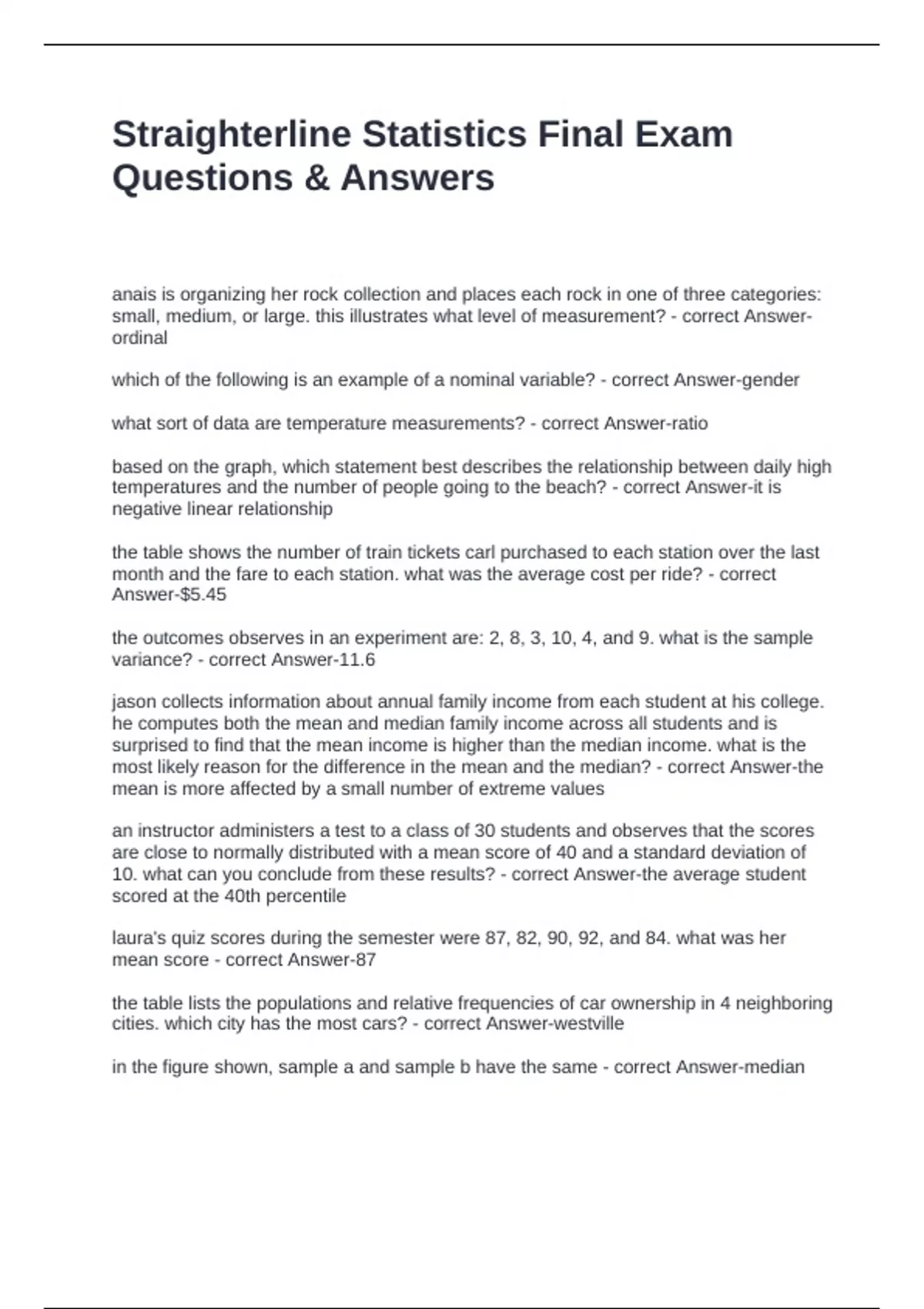 Straighterline Statistics Final Exam