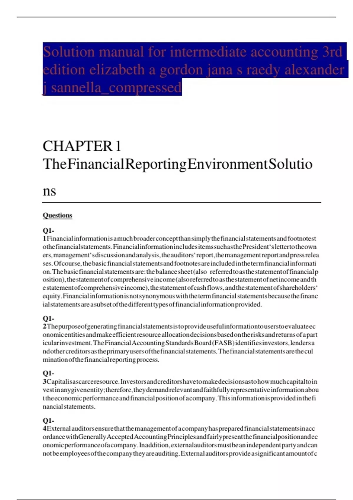 Solution Manual Intermediate Accounting 3rd Edition by Elizabeth A. Gordon, Jana S. Raedy, Alexander J. Sannella Immediately available after payment Both online and in PDF 100% Money Back Guarantee