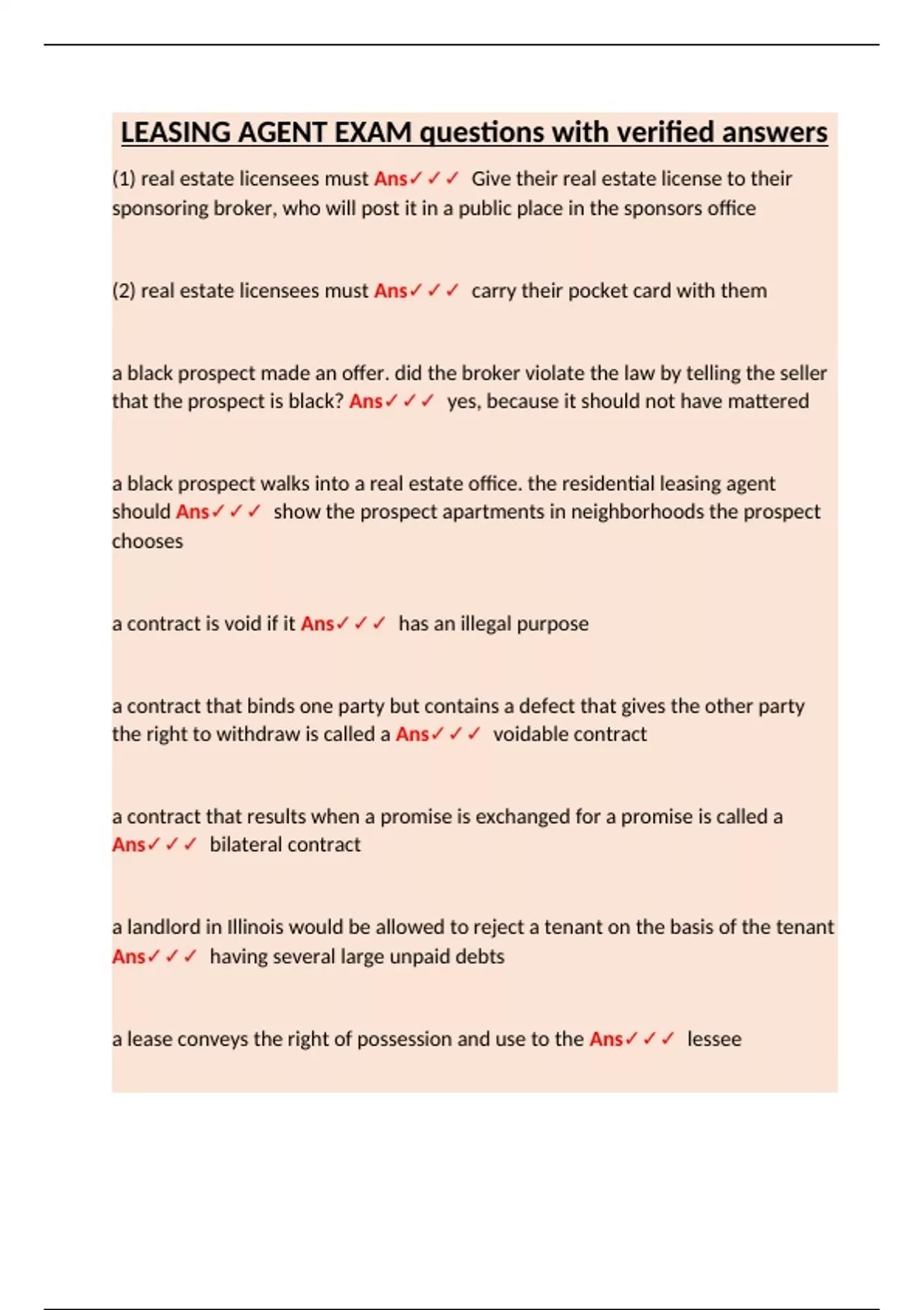 (1) real estate licensees must Ans✓✓✓ Give their real estate license to their