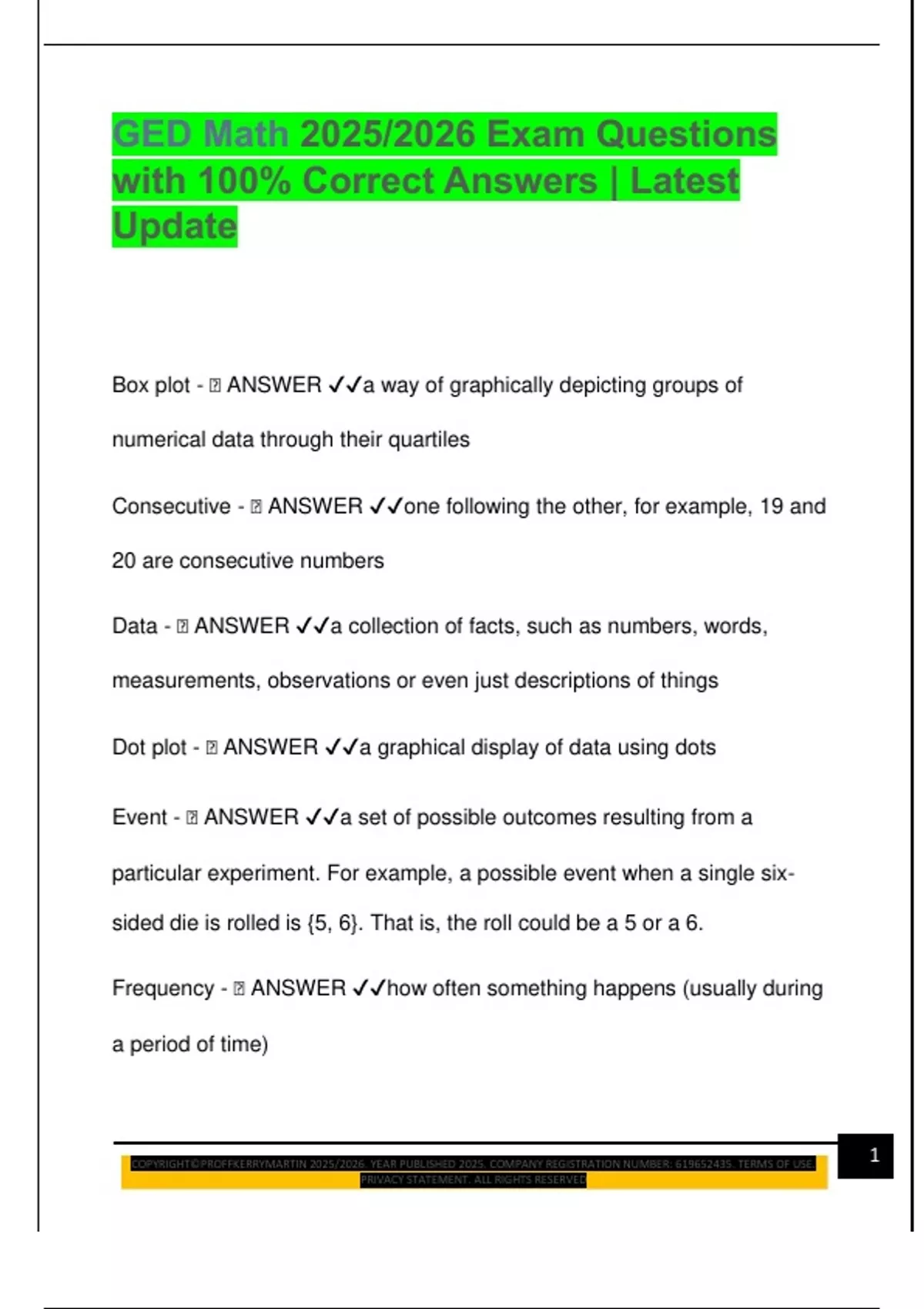 GED Math 2025/2026 Exam Questions with 100% Correct Answers | Latest Update