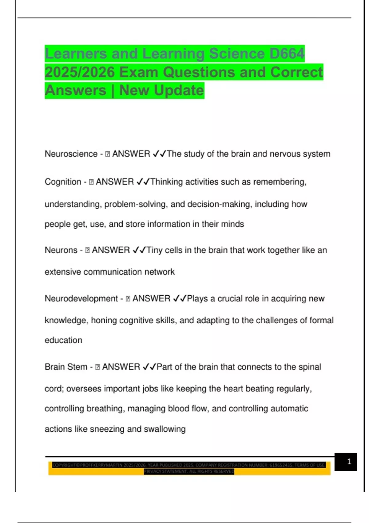 Neurodevelopment - 🧠 ANSWER ✔✔Plays a crucial role in acquiring new