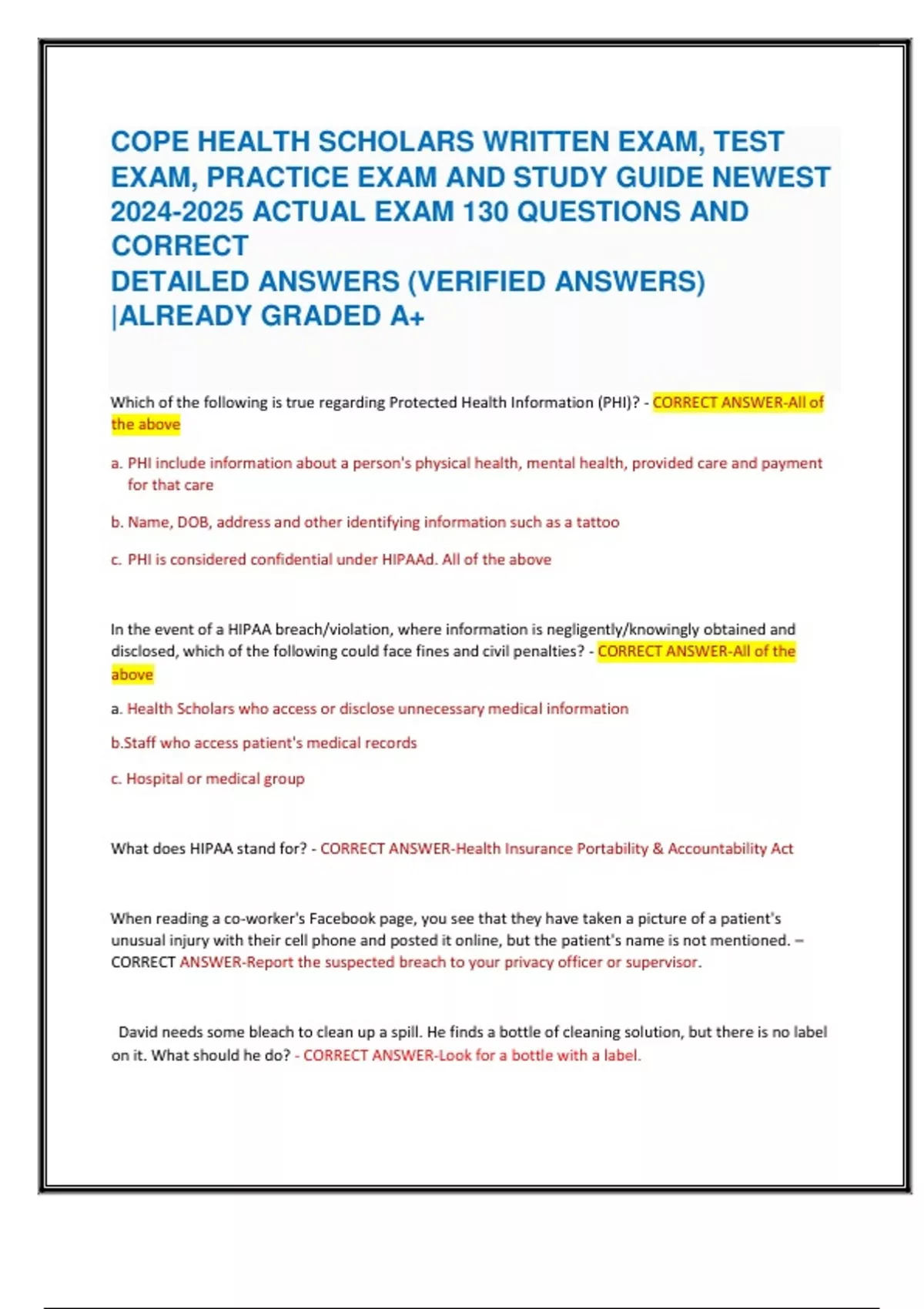 2024-2025 ACTUAL EXAM 130 QUESTIONS AND