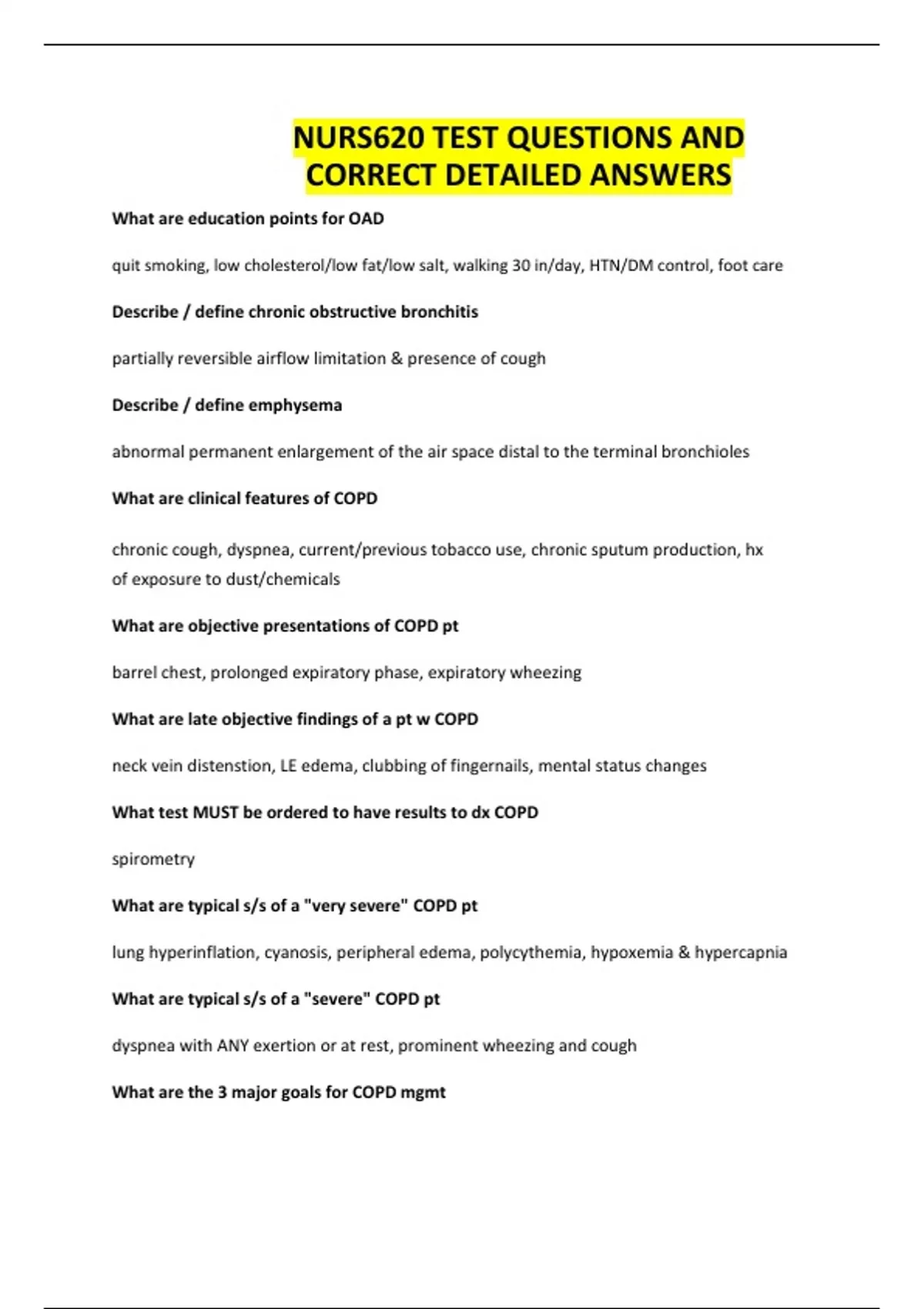 NURS620 TEST QUESTIONS AND