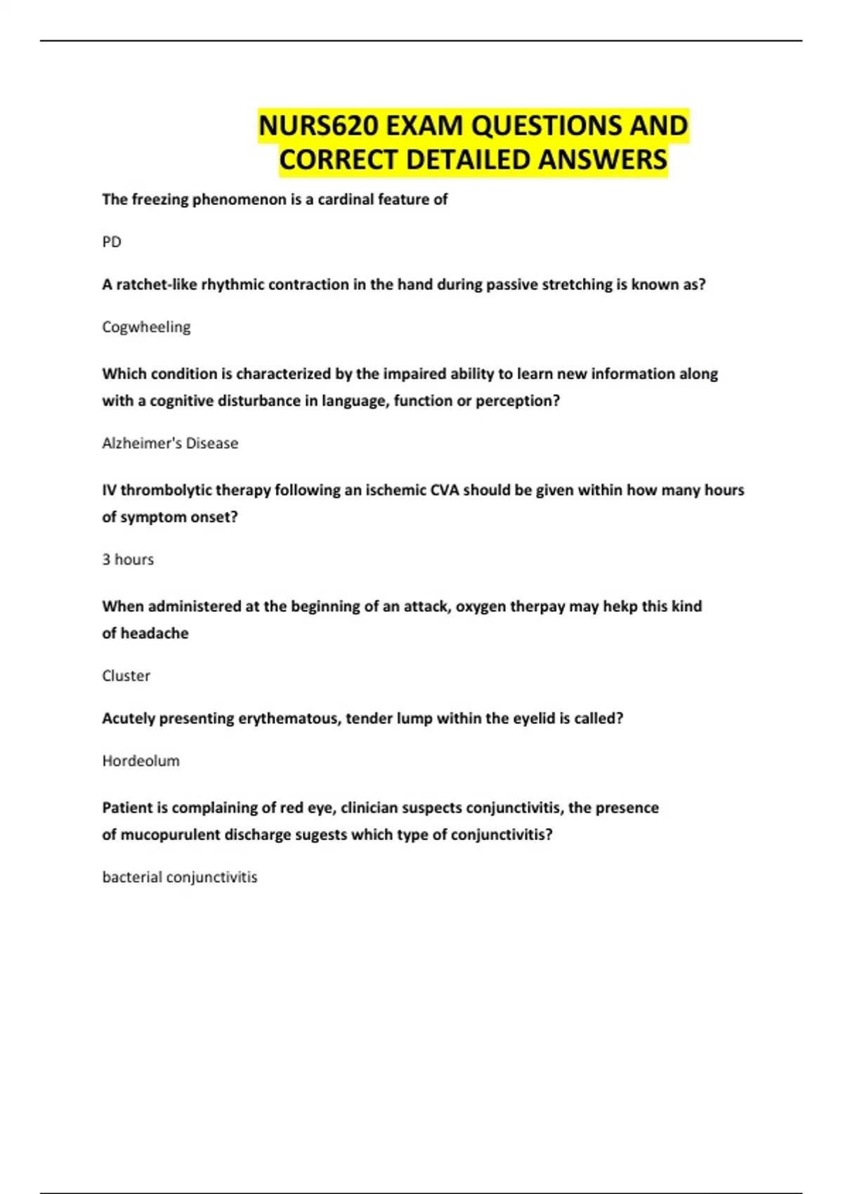 NURS620 EXAM QUESTIONS AND