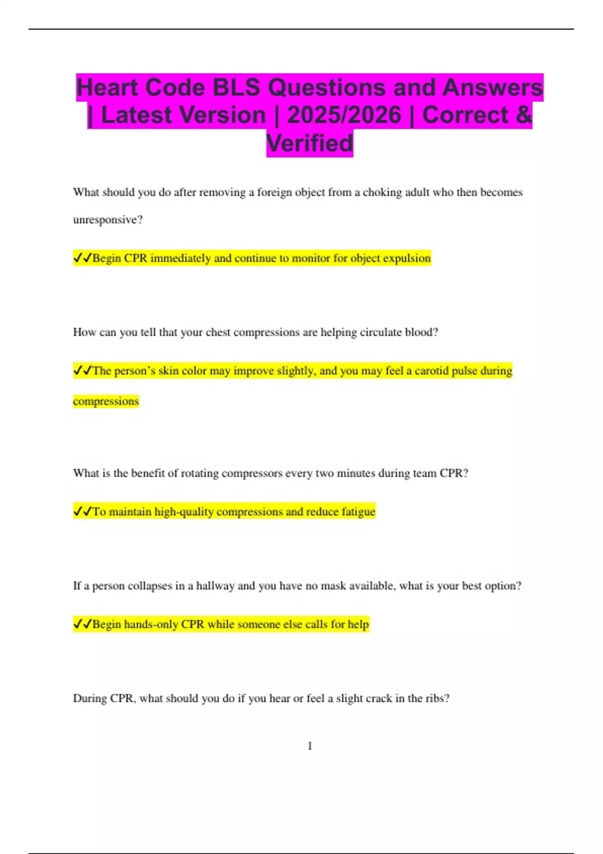 , ✔✔Continue CPR without interruption unless there's an obvious sign of injury
