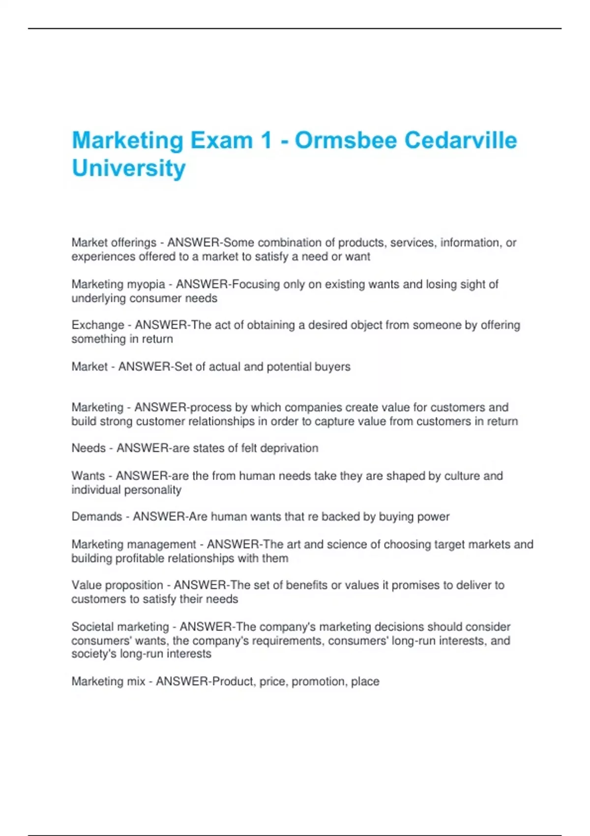 Value proposition - ANSWER-The set of benefits or values it promises to deliver to