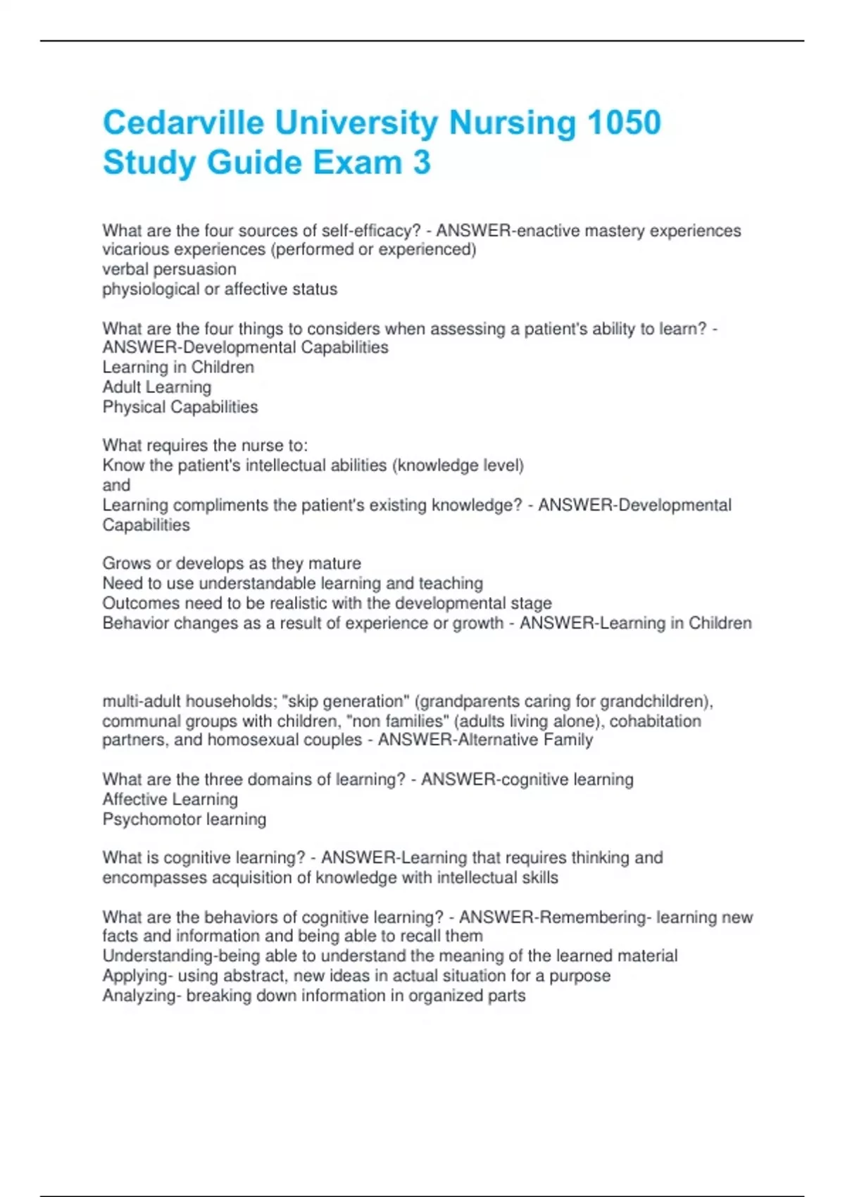 What are the three domains of learning? - ANSWER-cognitive learning