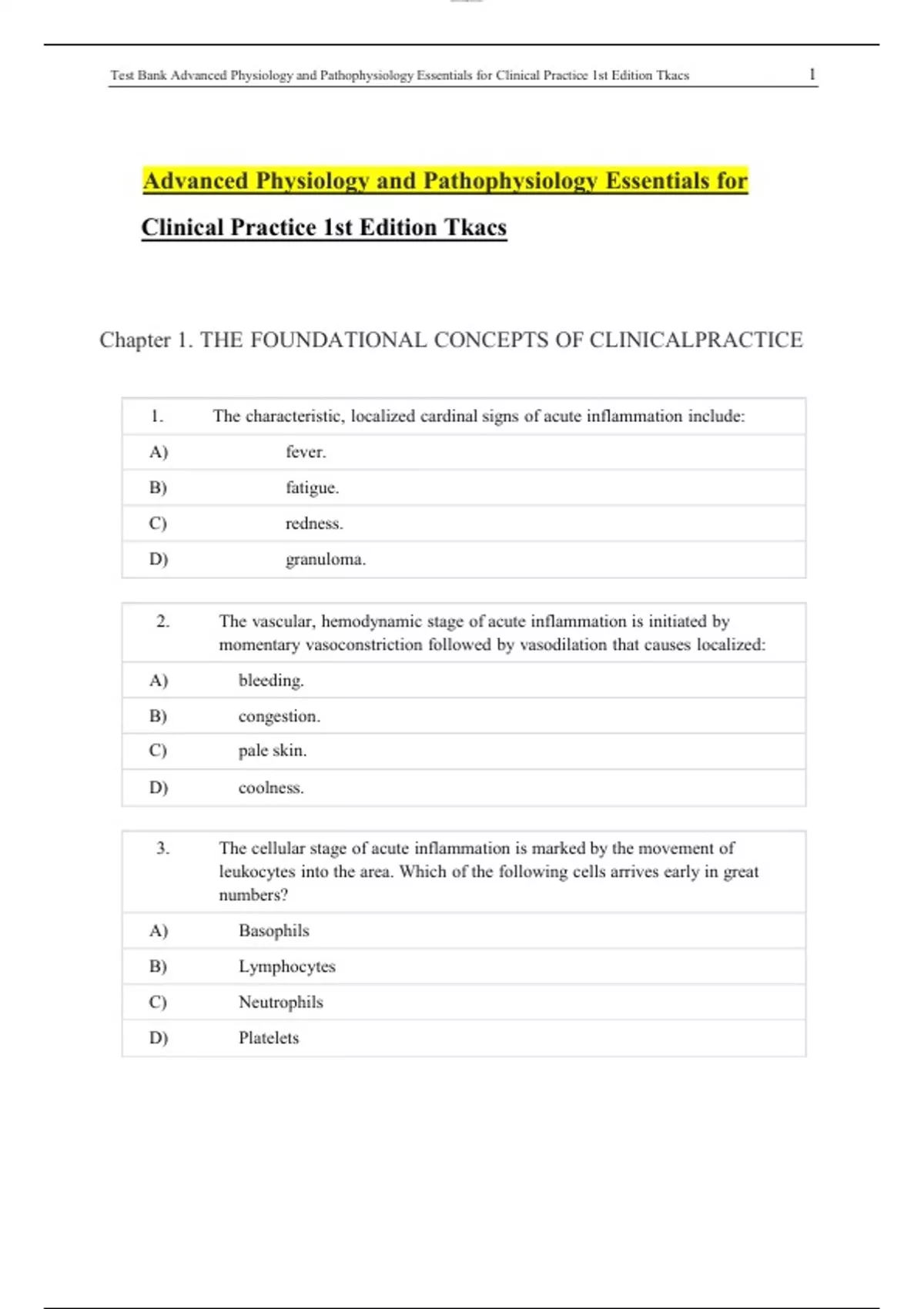 Test Bank For Advanced Physiology and Pathophysiology, 1st Edition