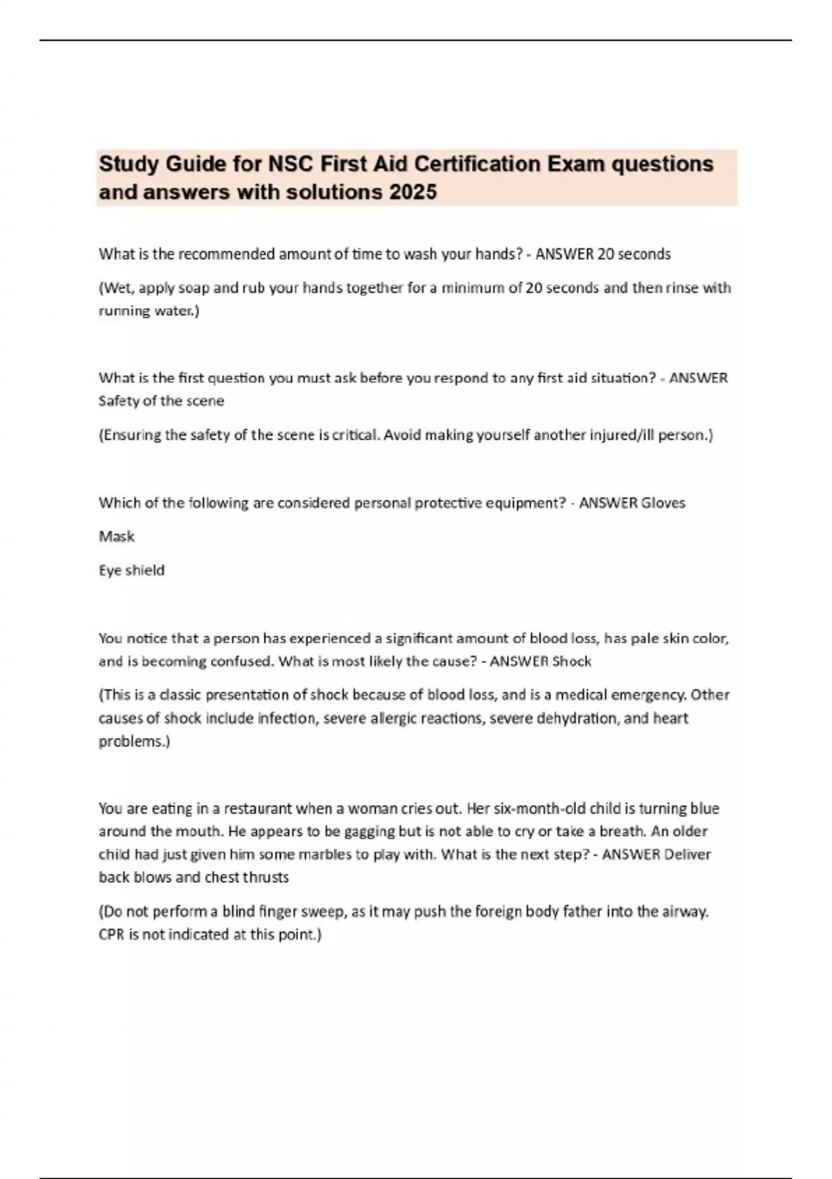 Study Guide for NSC First Aid Certification Exam questions and answers with solutions 2025.
