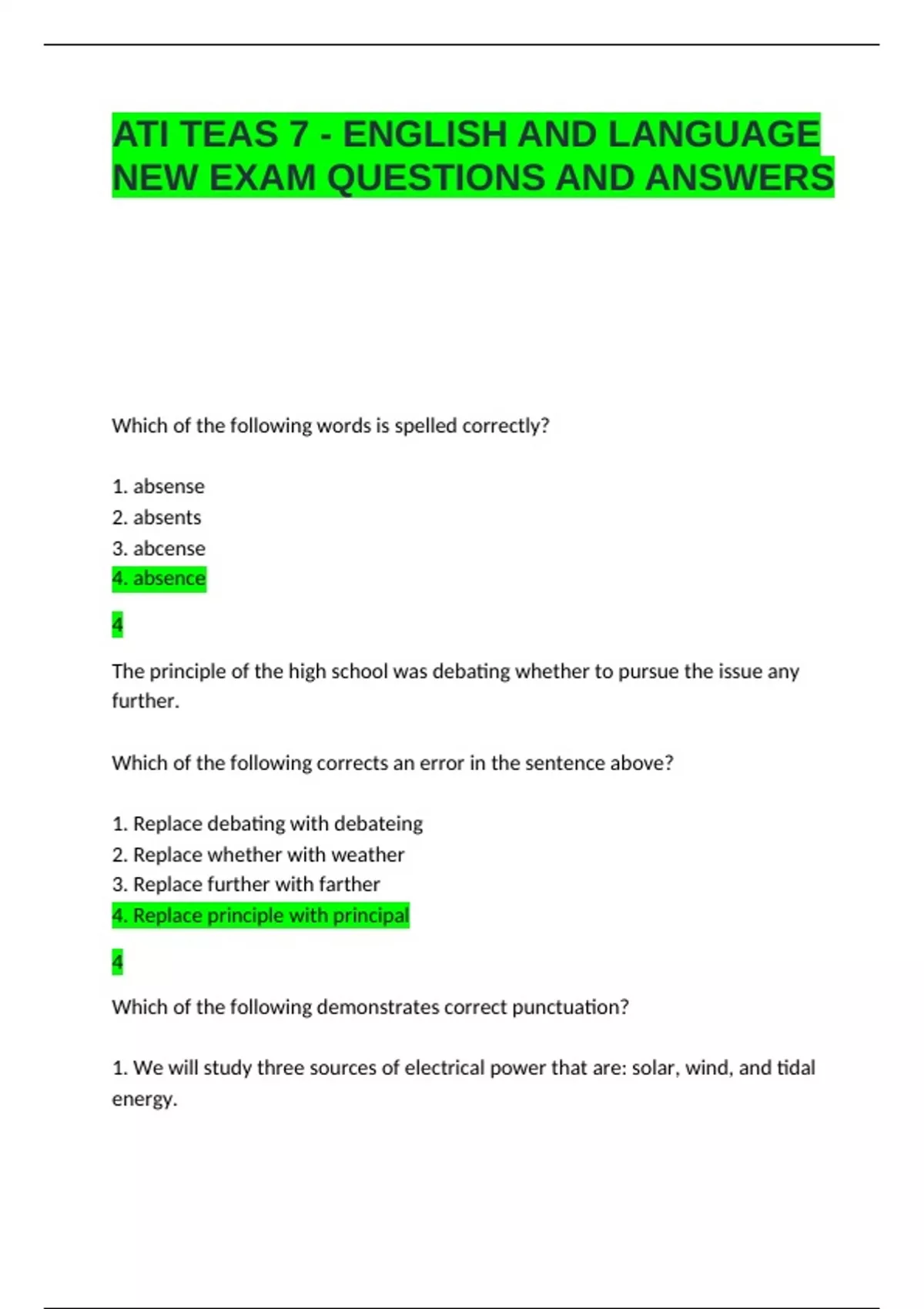 ATI TEAS 7 - ENGLISH AND LANGUAGE NEW EXAM QUESTIONS AND ANSWERS