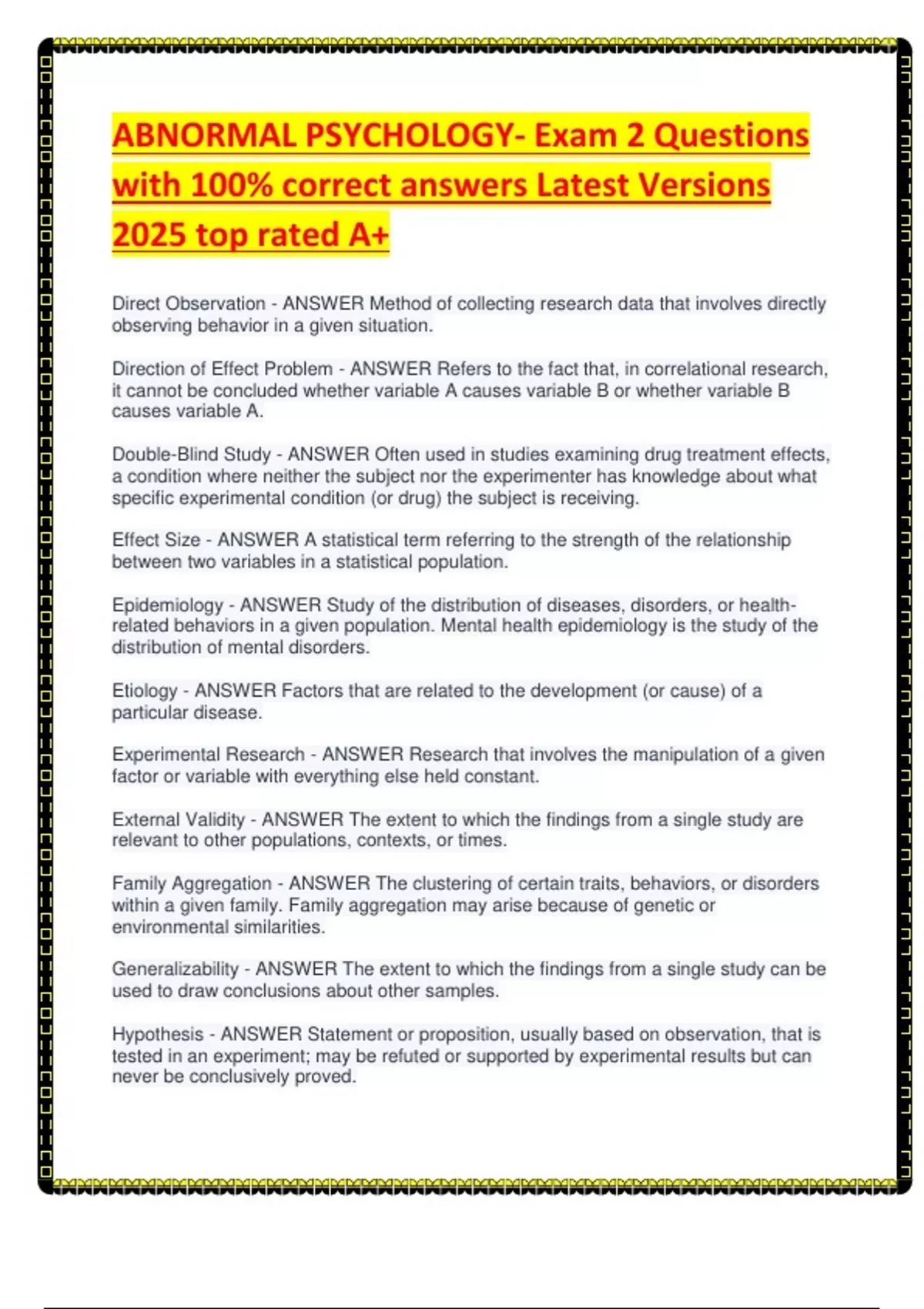 ABNORMAL PSYCHOLOGY- Exam 2 Questions