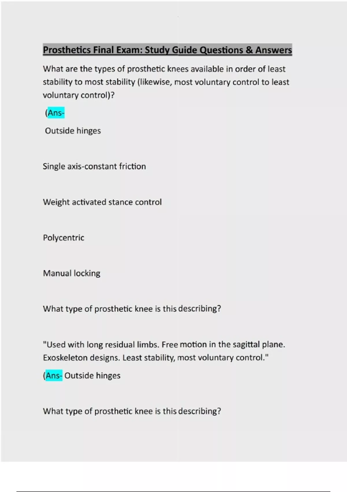 Prosthetics Final Exam: Study Guide Questions & Answers: Updated Guide