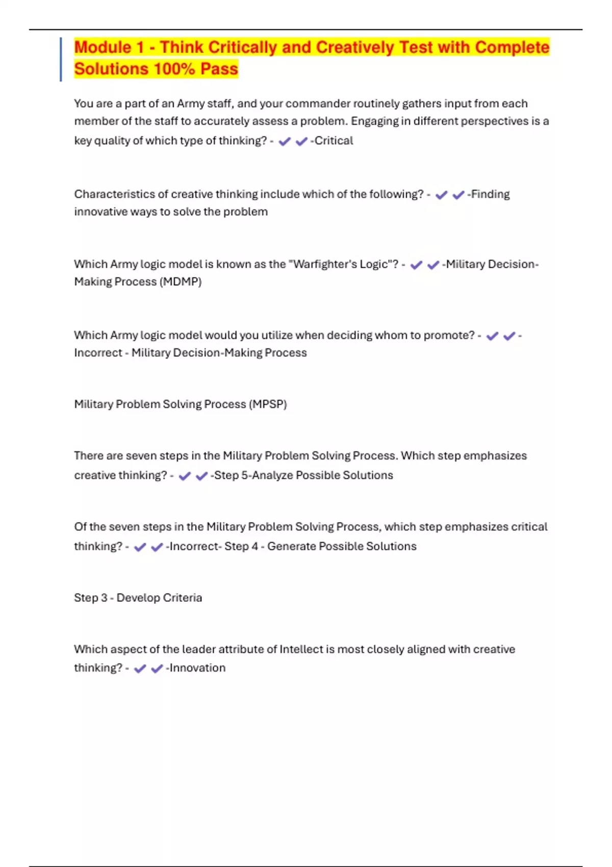 There are seven steps in the Military Problem Solving Process. Which step emphasizes