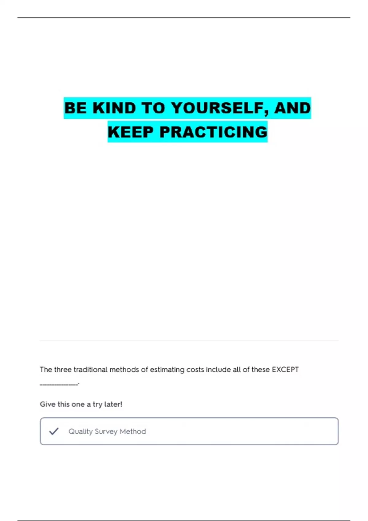 The three traditional methods of estimating costs include all of these EXCEPT