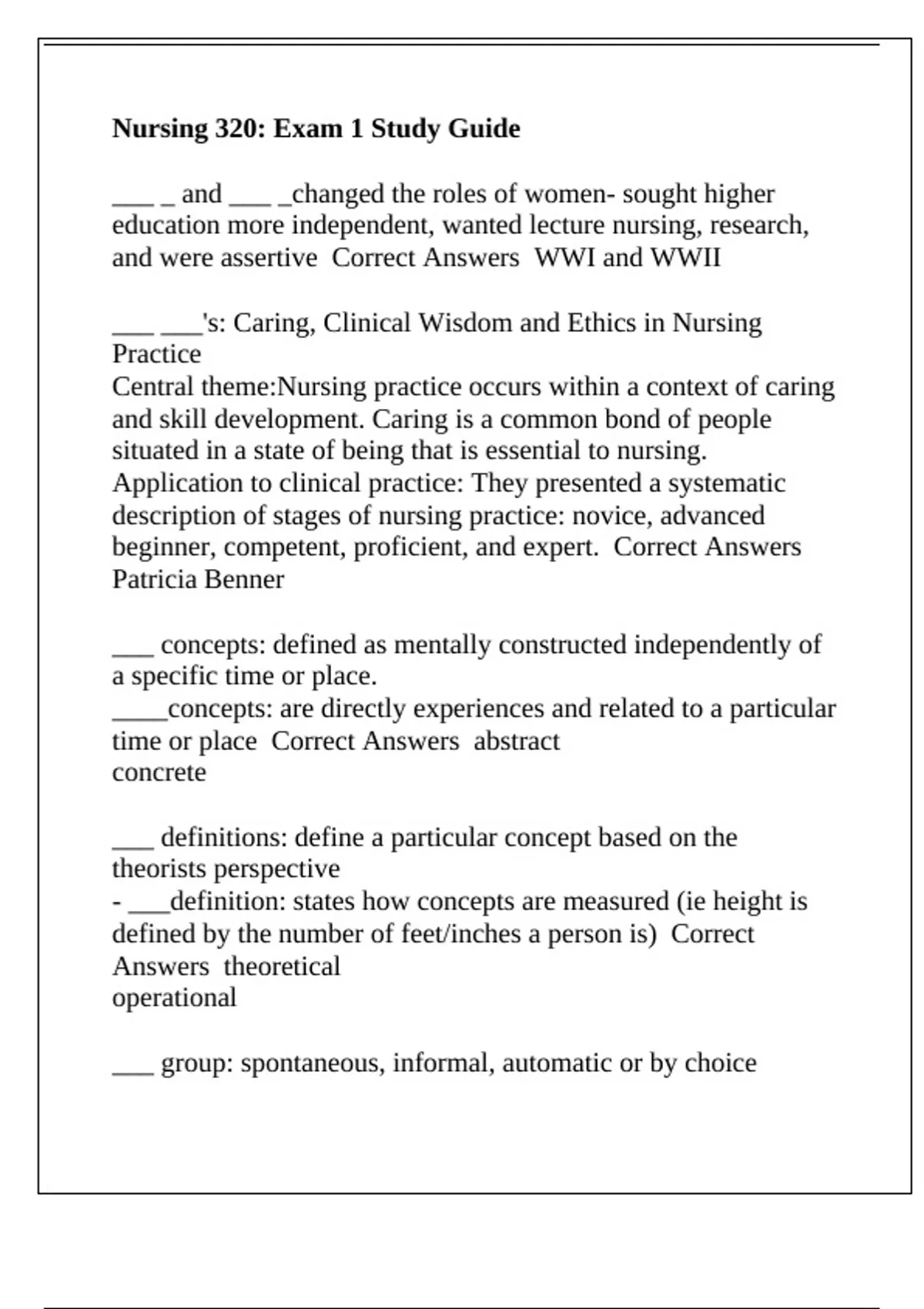 a more concrete and specific level Correct Answers Nursing