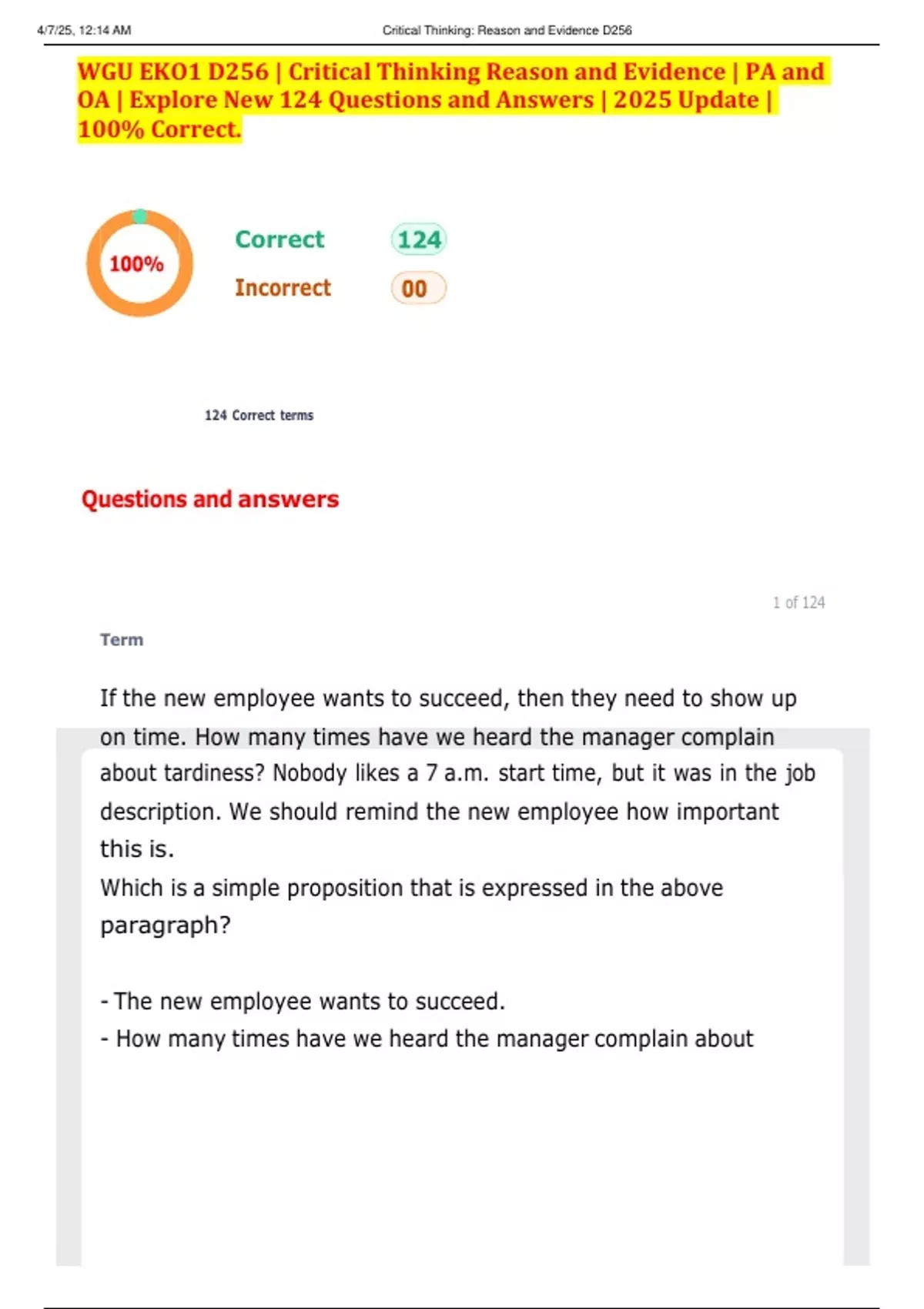, 4/7/25, 12:14 AM Critical Thinking: Reason and Evidence D256