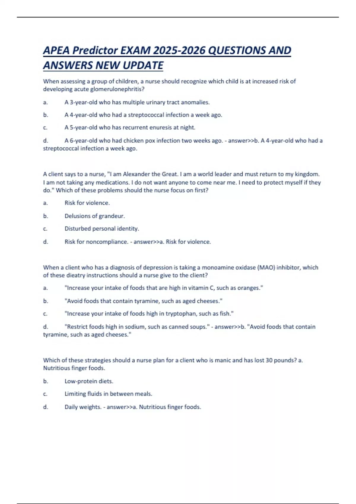 APEA Predictor EXAM 2025-2026 QUESTIONS AND