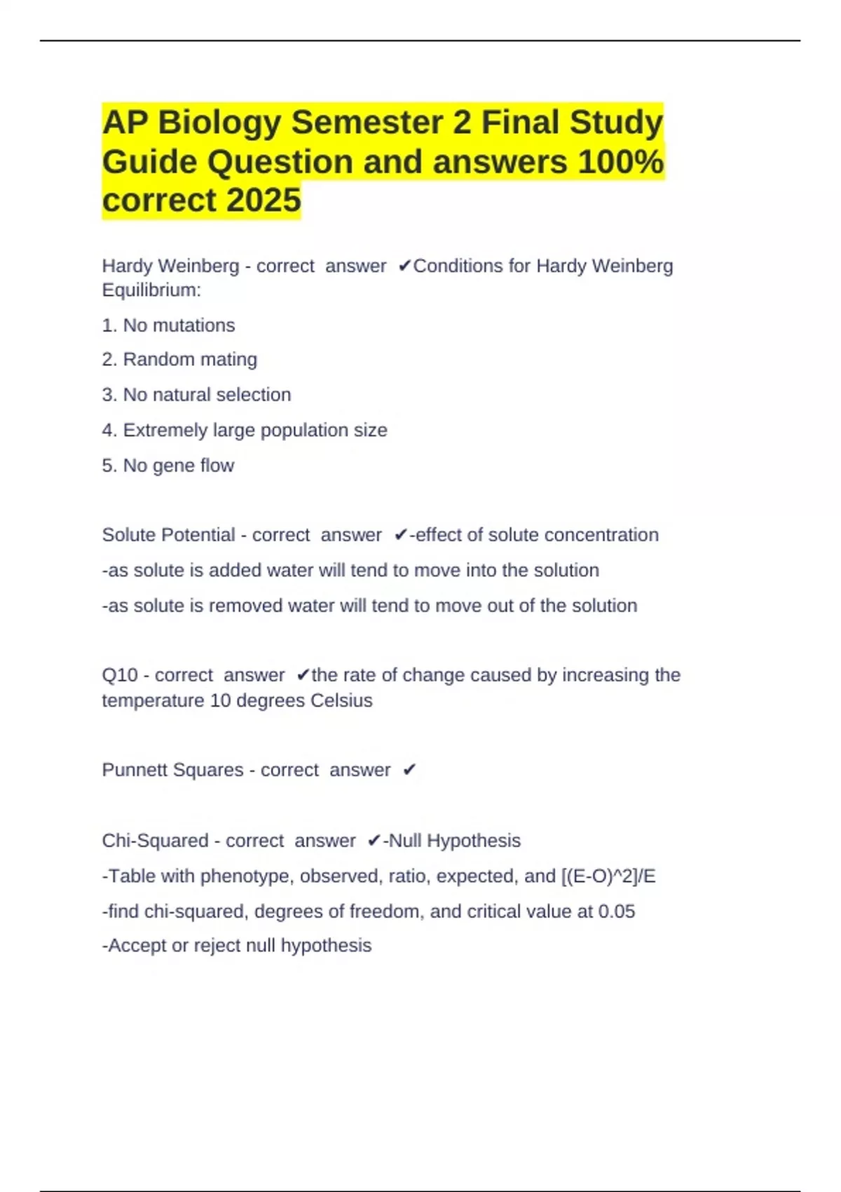 Hardy Weinberg - correct answer ✔Conditions for Hardy Weinberg