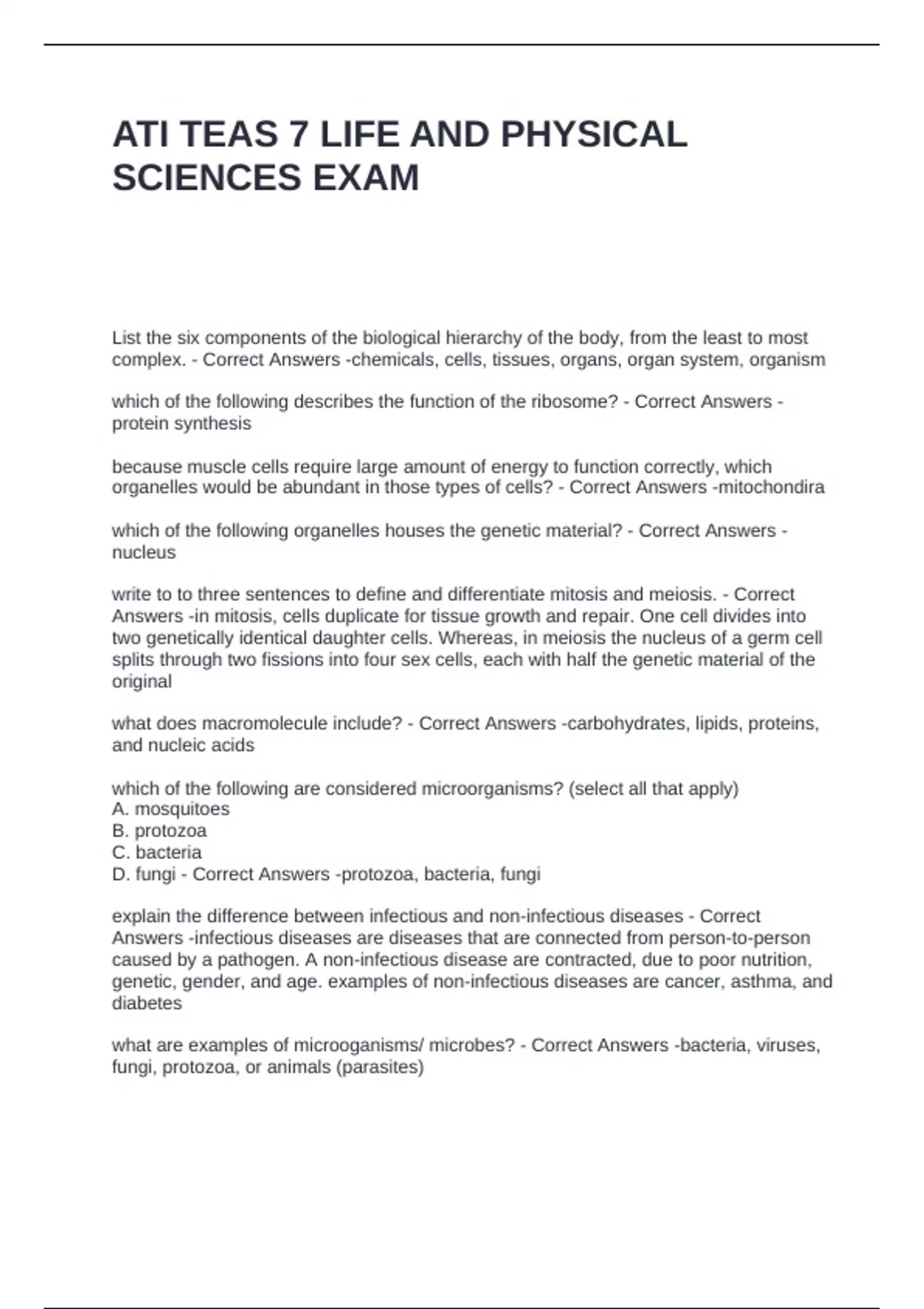 ATI TEAS 7 LIFE AND PHYSICAL
