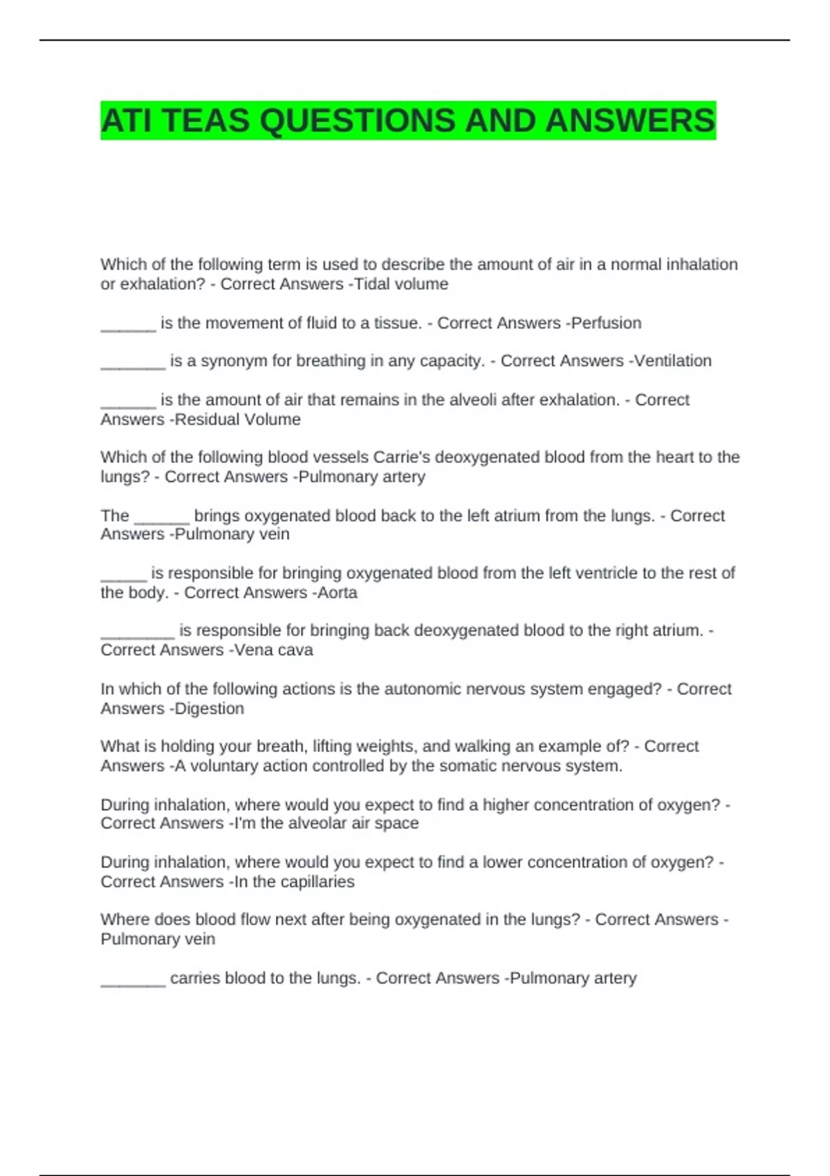 _______ carries blood to the lungs. - Correct Answers -Pulmonary artery