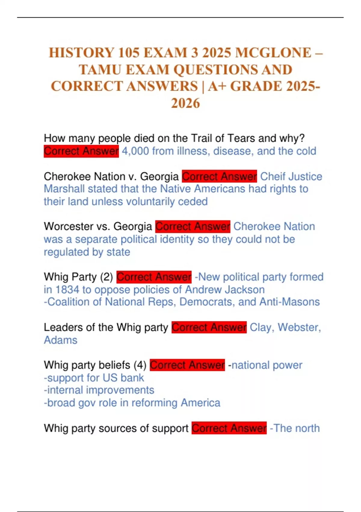 HISTORY 105 EXAM 3 2025 MCGLONE –
