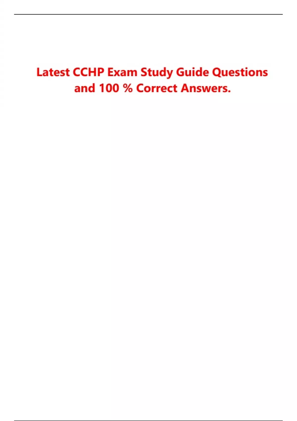 Latest CCHP Exam Study Guide Questions and 100 % Correct Answers.