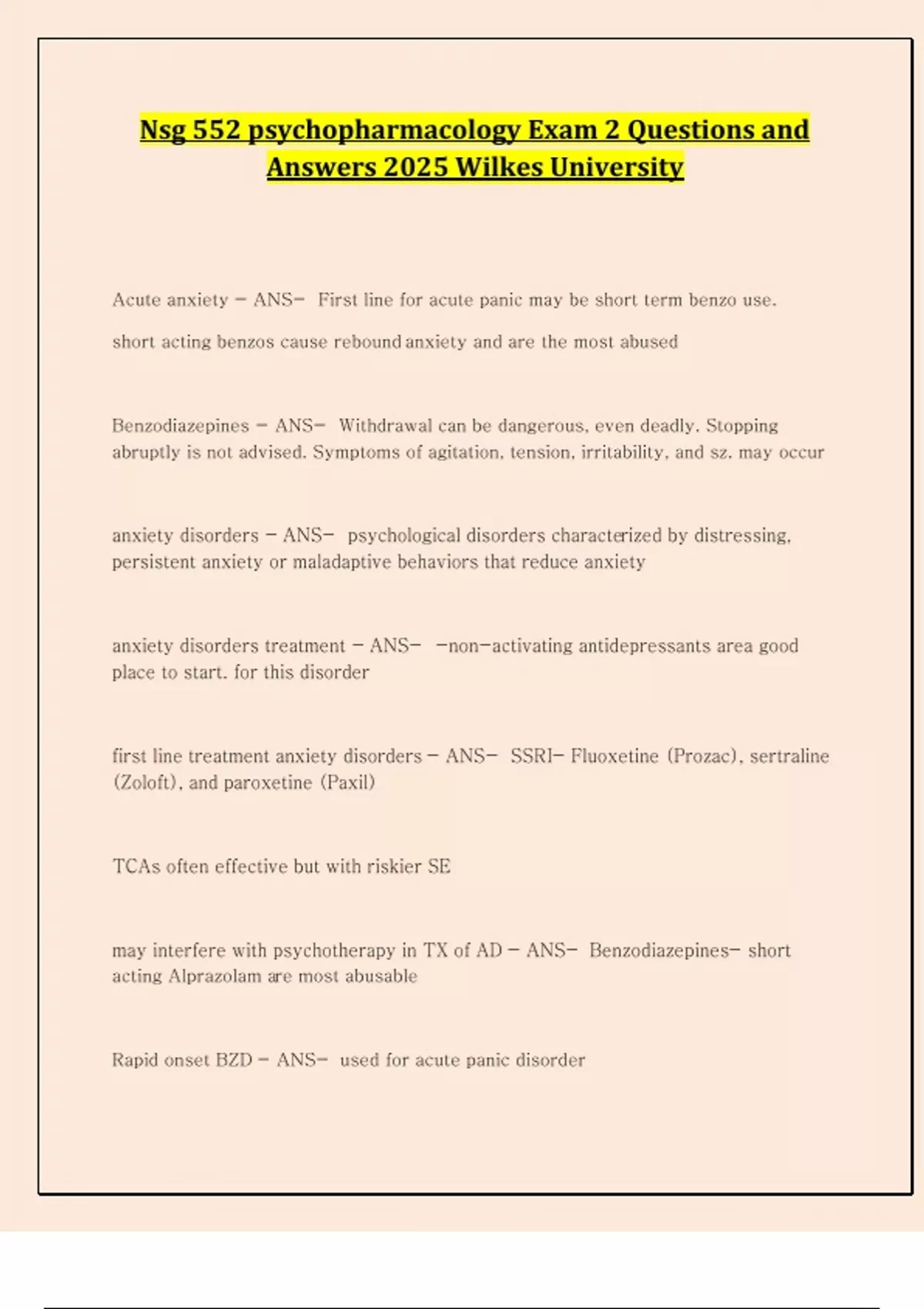 Nsg 552 psychopharmacology Exam 2 Questions and Answers 2025 Wilkes University