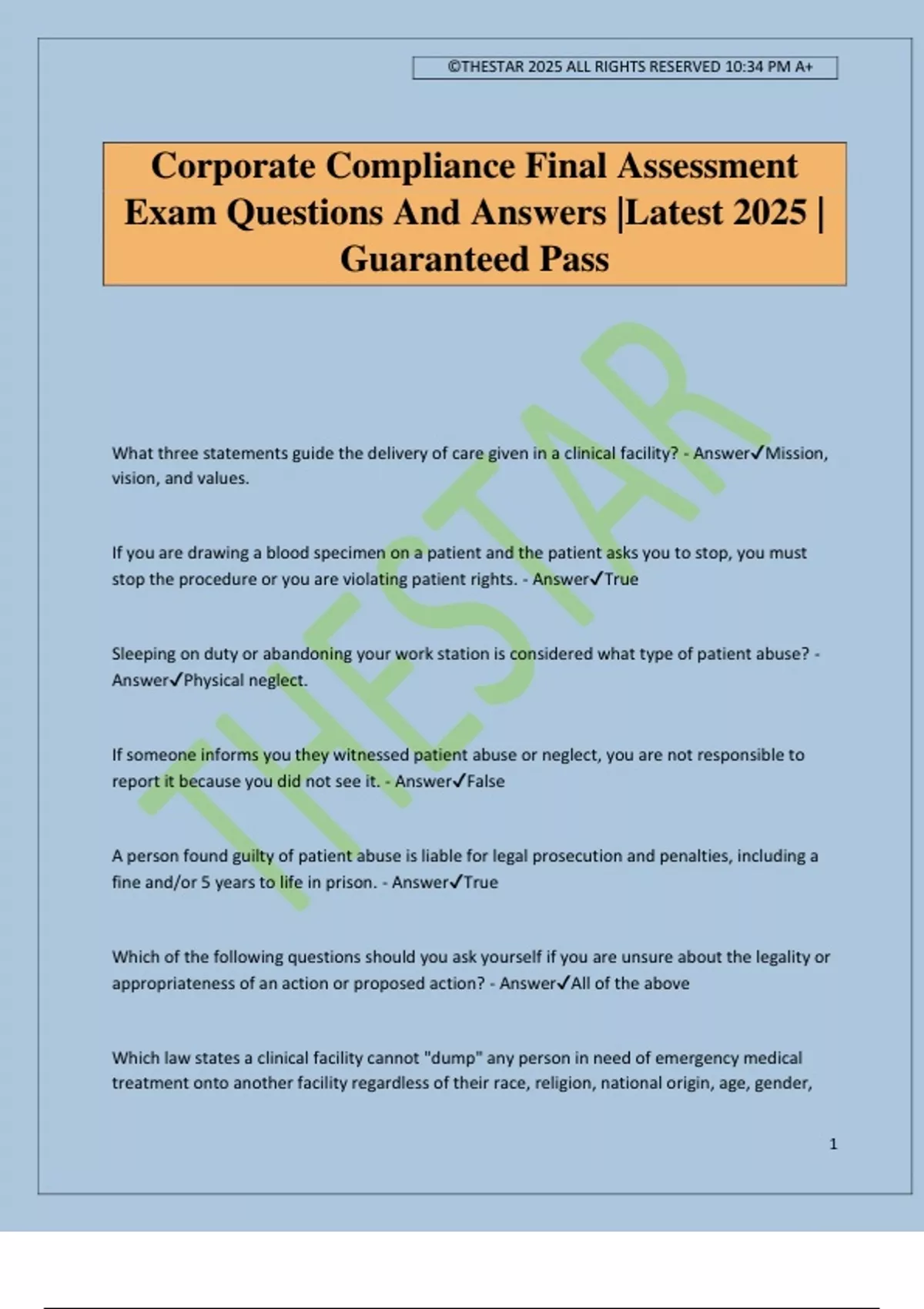 Exam Questions And Answers |Latest 2025 |