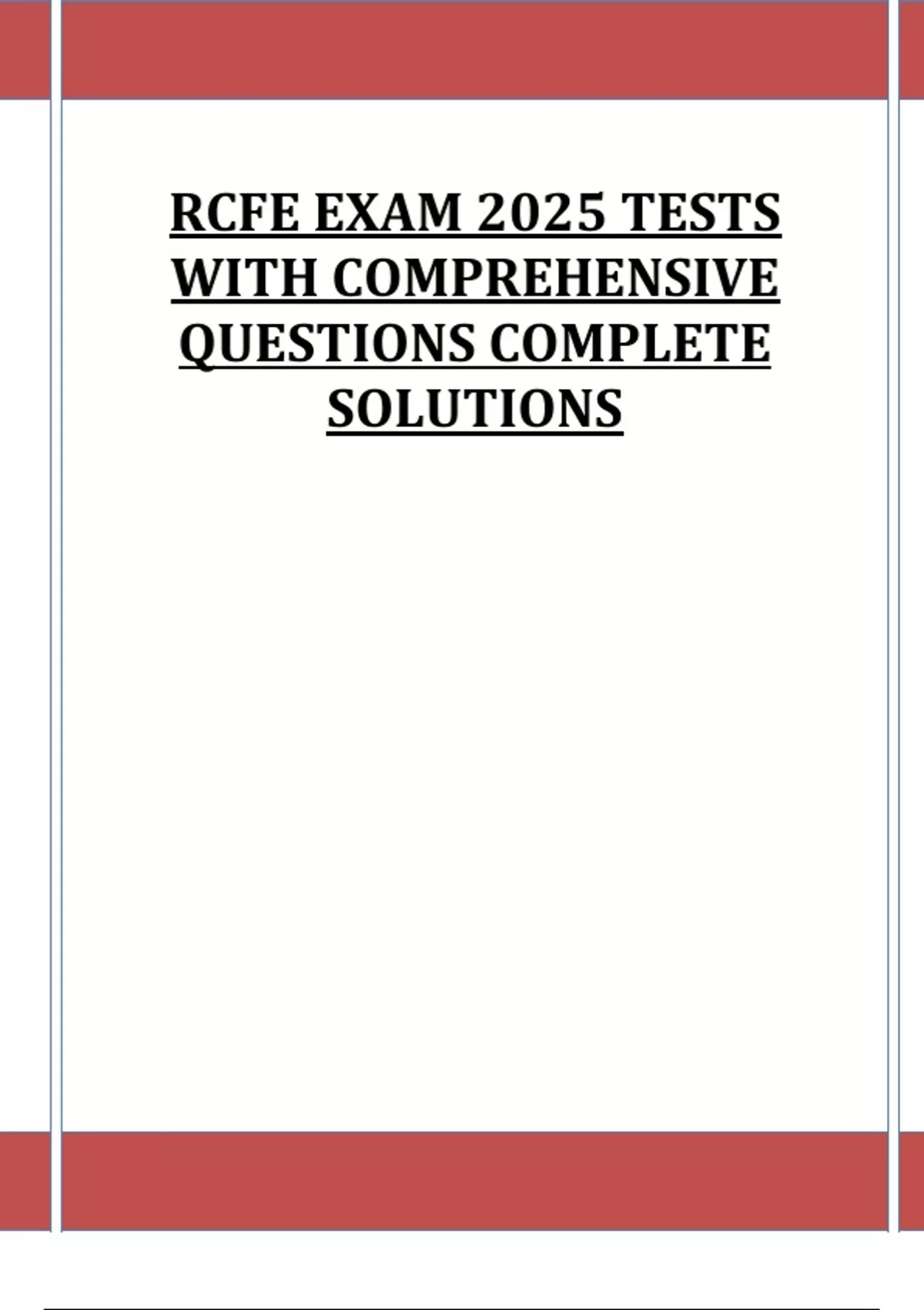 RCFE EXAM 2025 TESTS WITH COMPREHENSIVE QUESTIONS COMPLETE SOLUTIONS