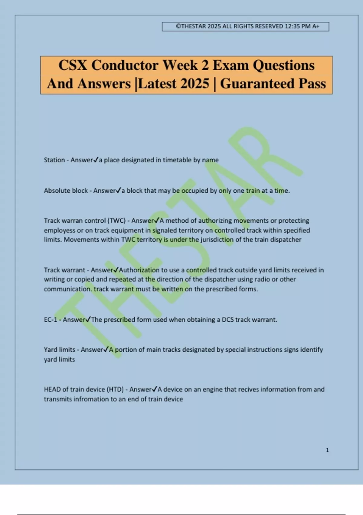Work train - Answer✔A train that is assigned to serve the Maintenance of way department in