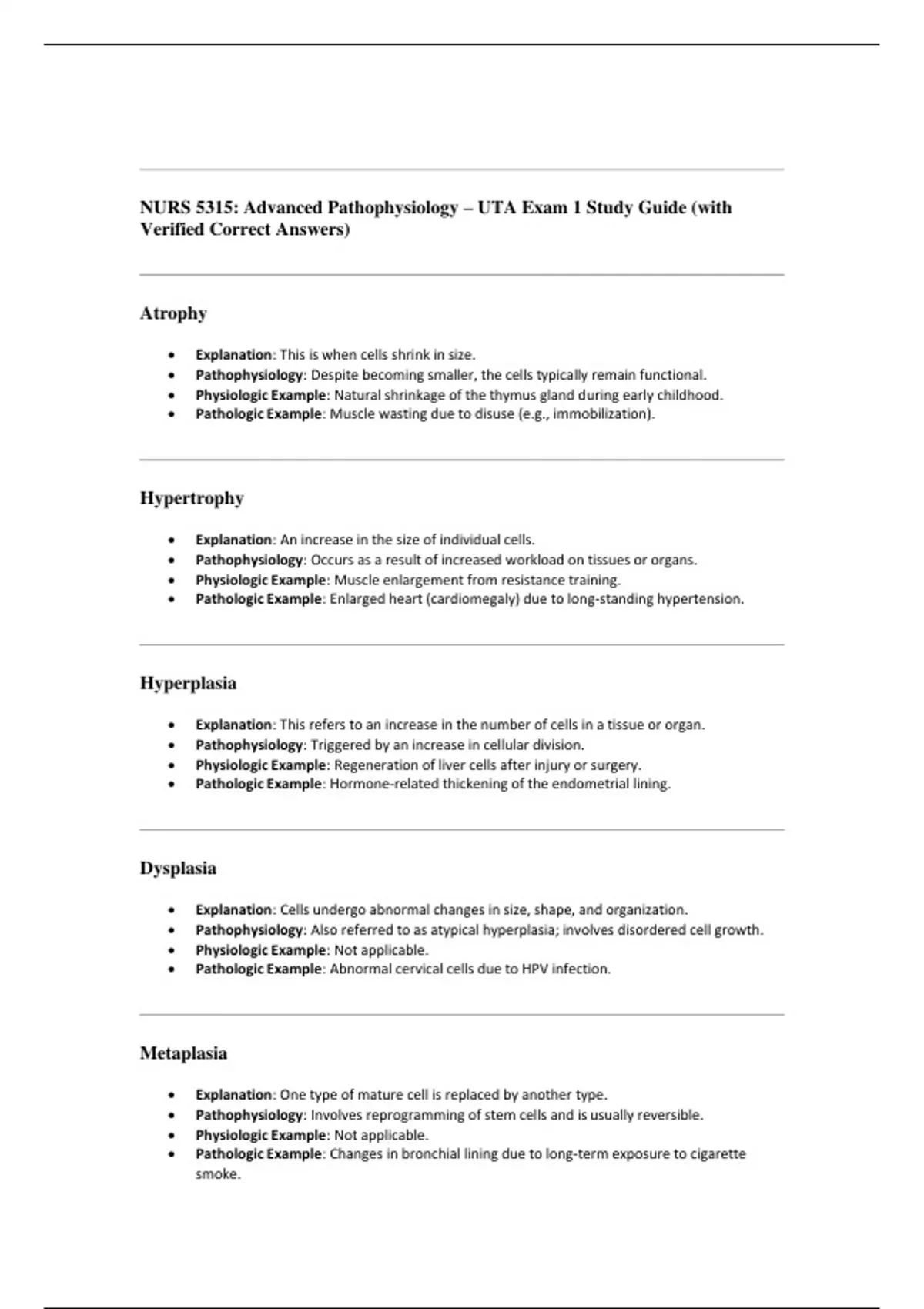 • Pathophysiology: Also referred to as atypical hyperplasia; involves disordered cell growth.
