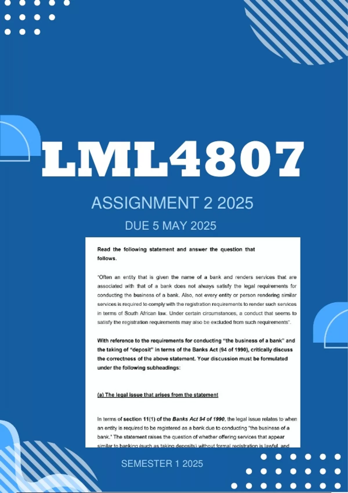 - Banking Law and Usage (LML4807)