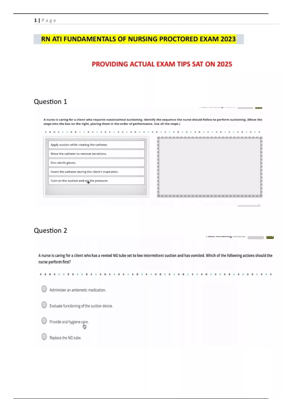 RN ATI FUNDAMENTALS OF NURSING PROCTORED EXAM 2023