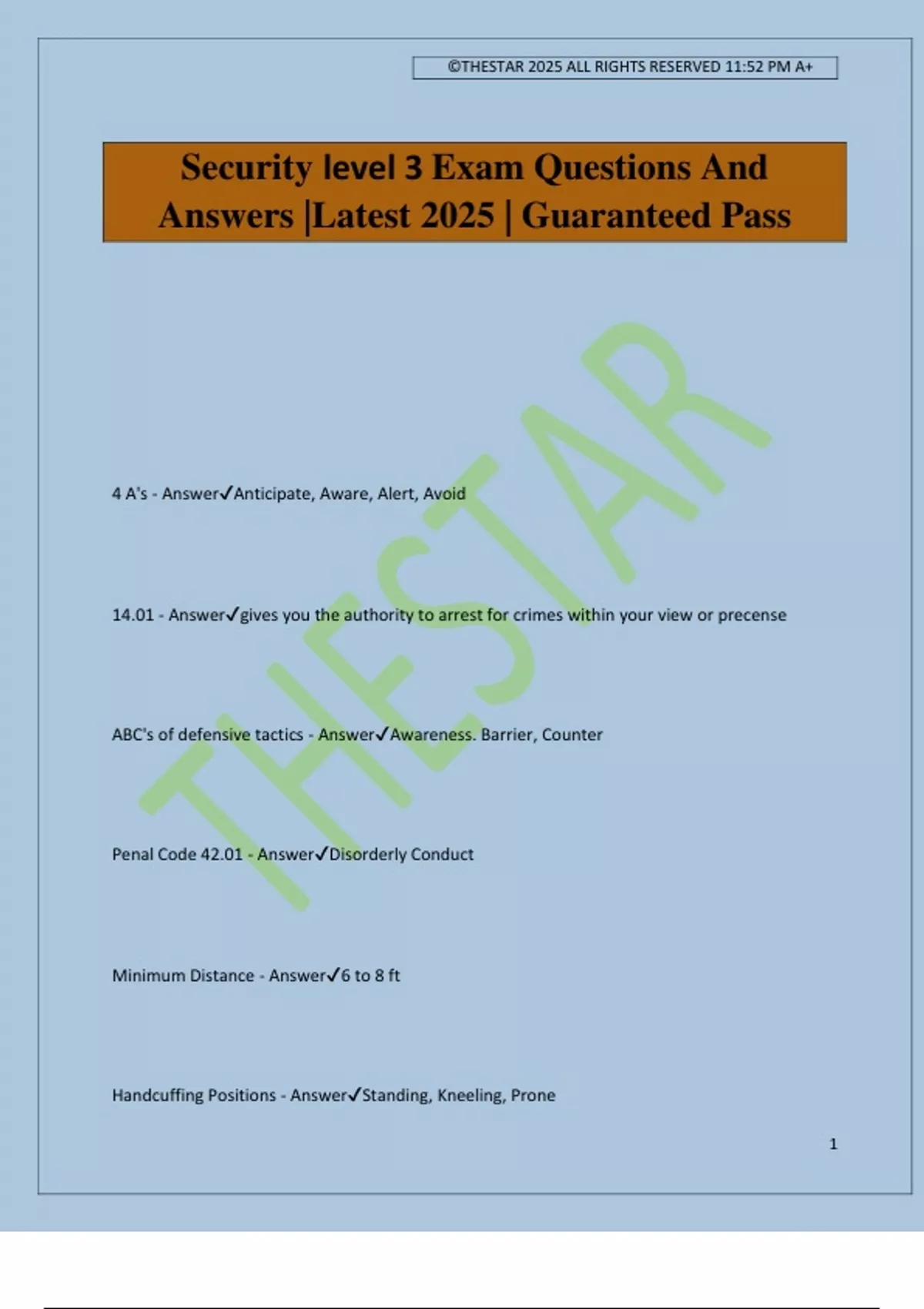 Security level 3 Exam Questions And