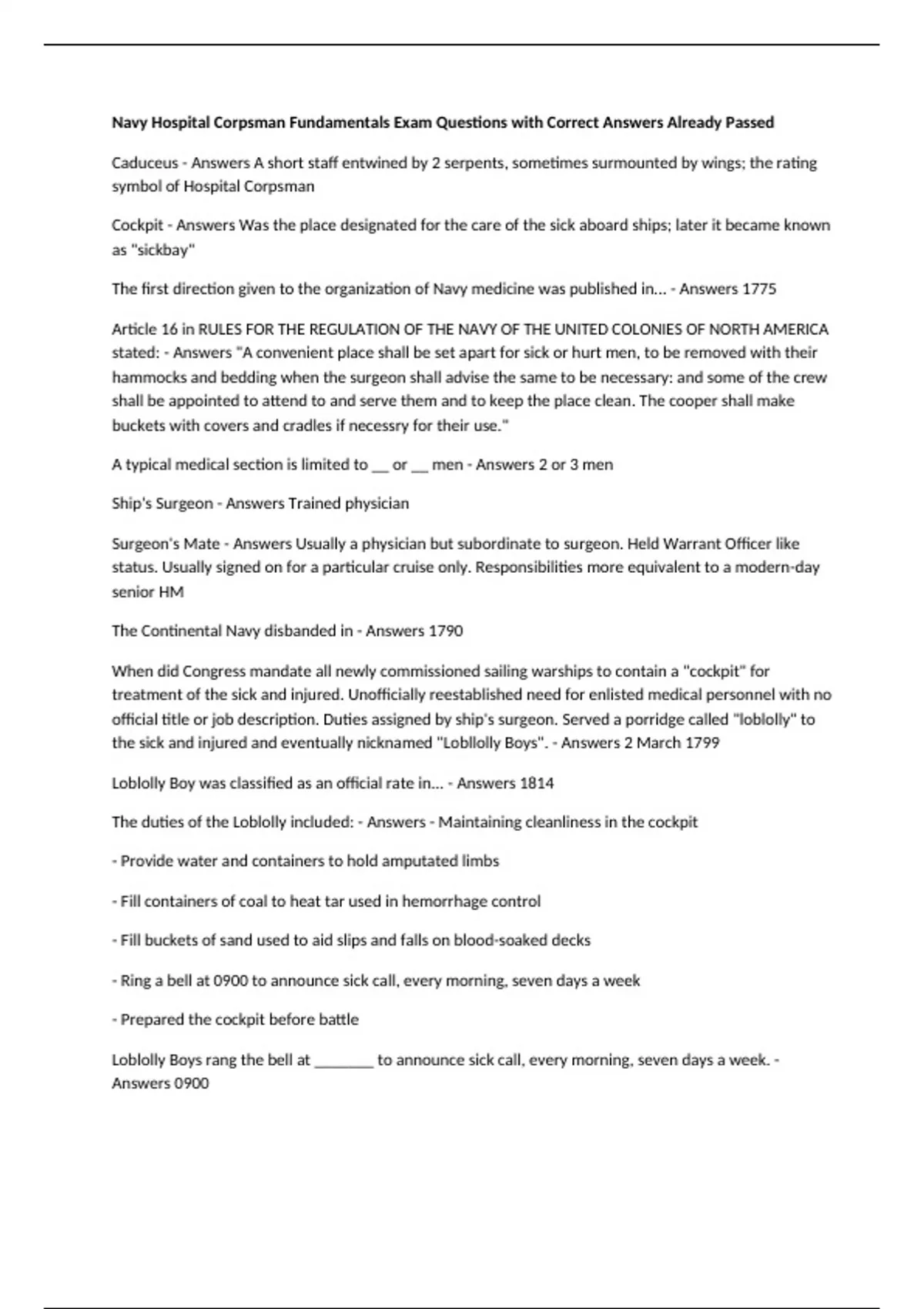 The first direction given to the organization of Navy medicine was published in... - Answers 1775