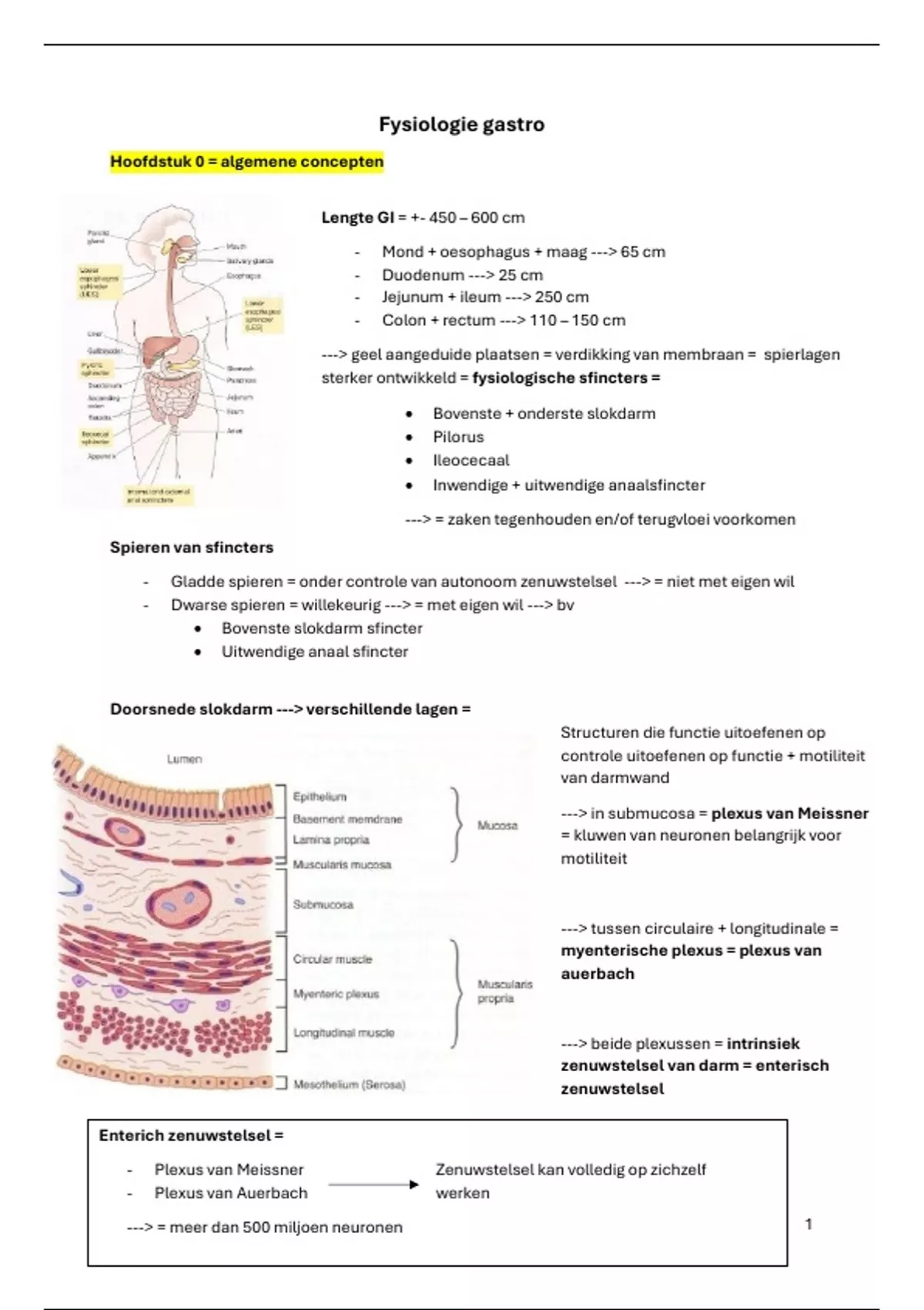 ---> = volledig bewerk gesteld door enterisch zenuwstelsel = volledig autonoom = zonder