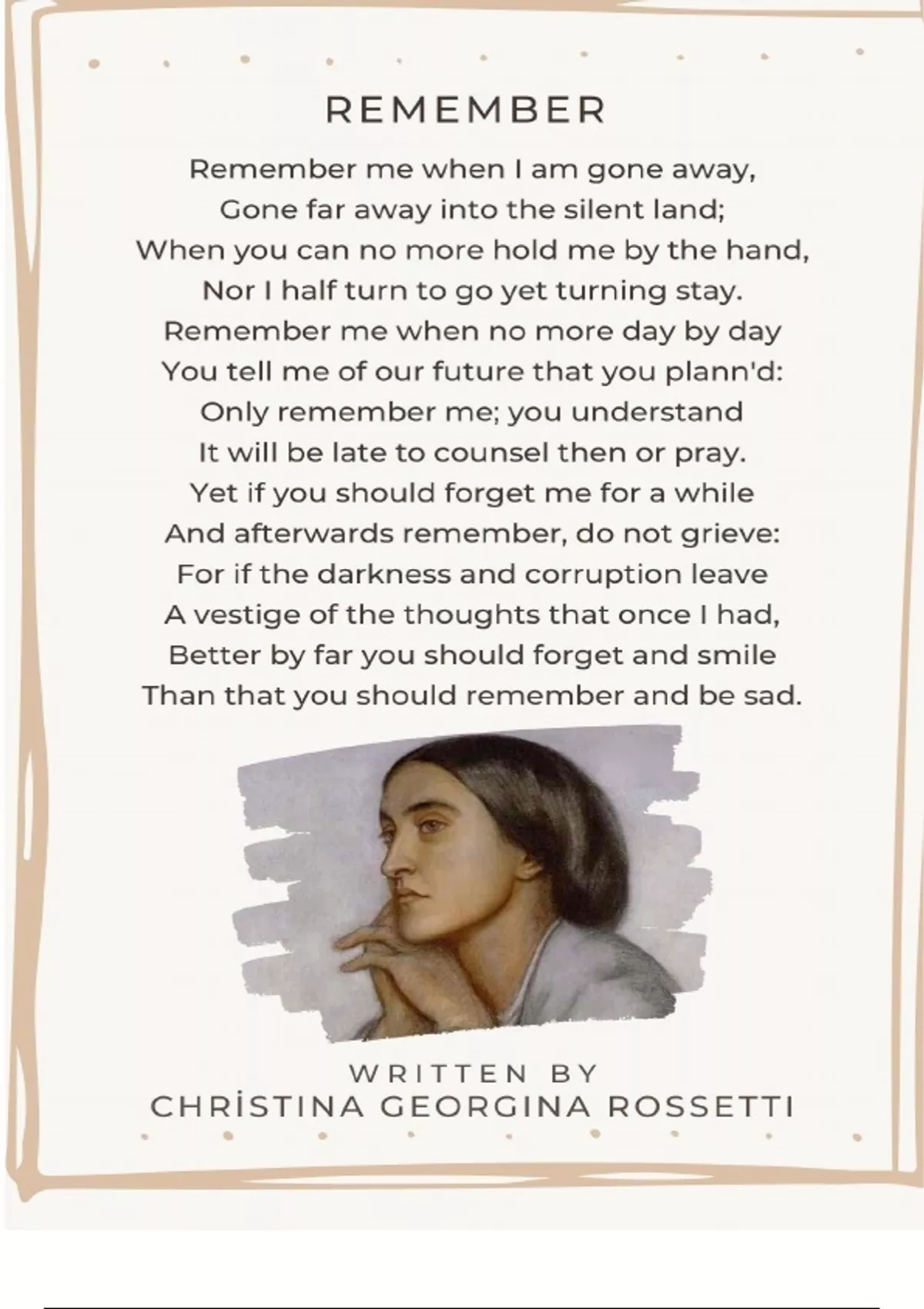 Summary (IEB) GRADE 12 ENGLISH HL - CHRISTINA ROSETTI - REMEMBER ANALYSIS