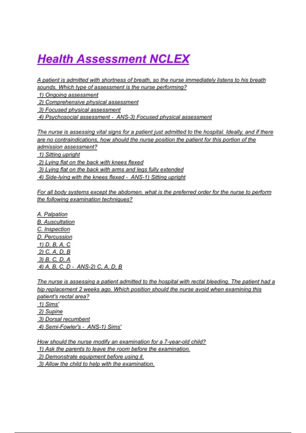 4) Psychosocial assessment - ANS-3) Focused physical assessment