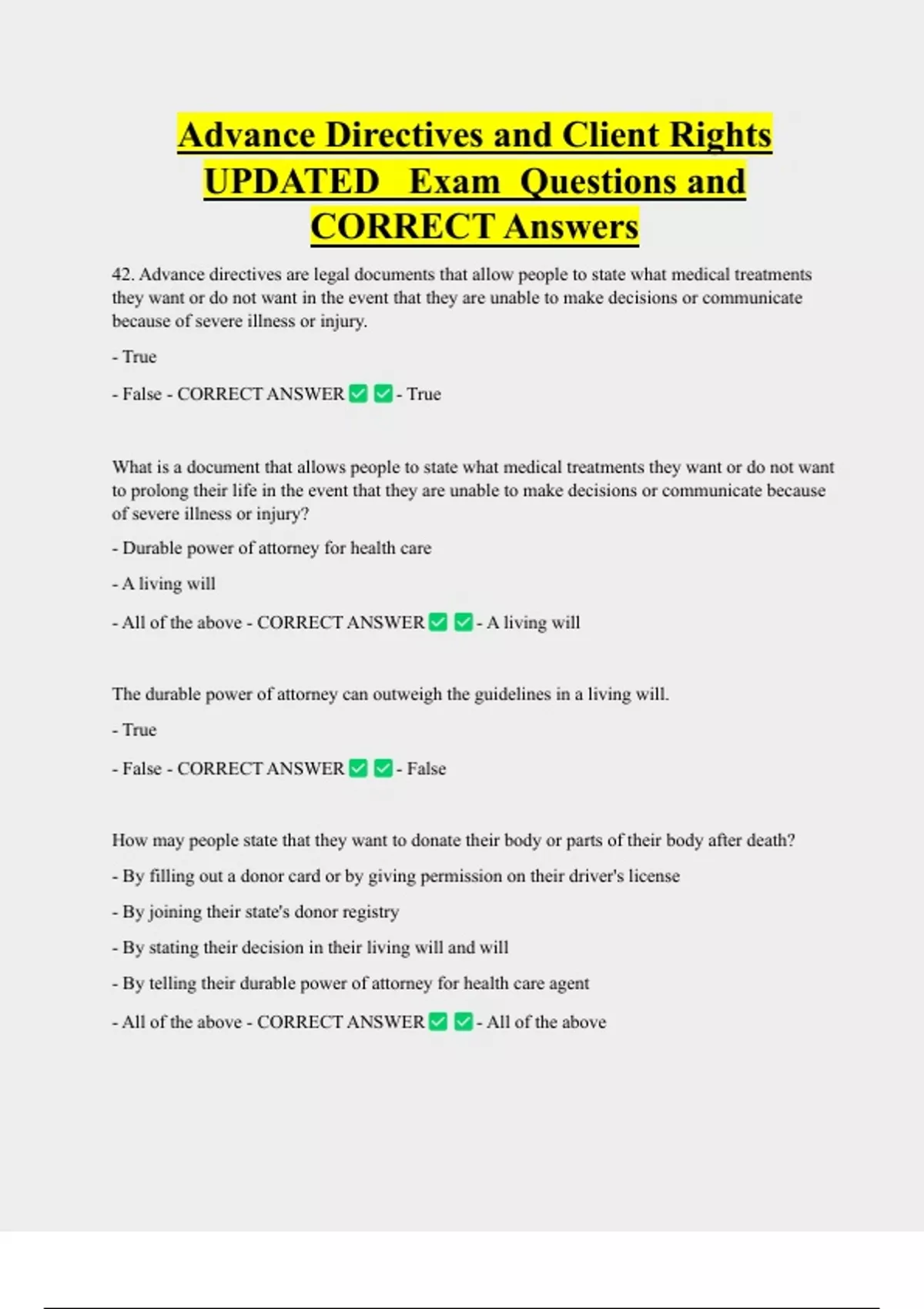 42. Advance directives are legal documents that allow people to state what medical treatments