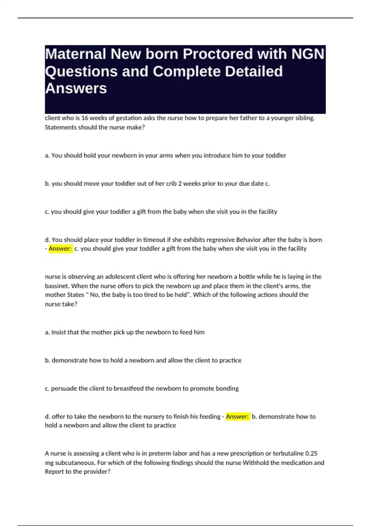 - Answer: c. you should give your toddler a gift from the baby when she visit you in the facility